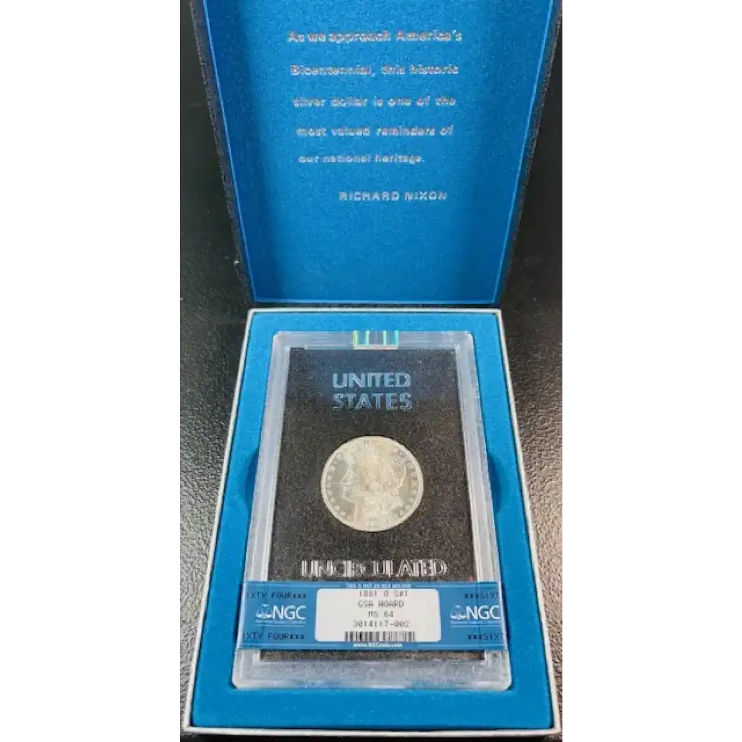 1881-O Morgan Silver Dollar NGC MS-64 GSA Hoard OGP Rare!