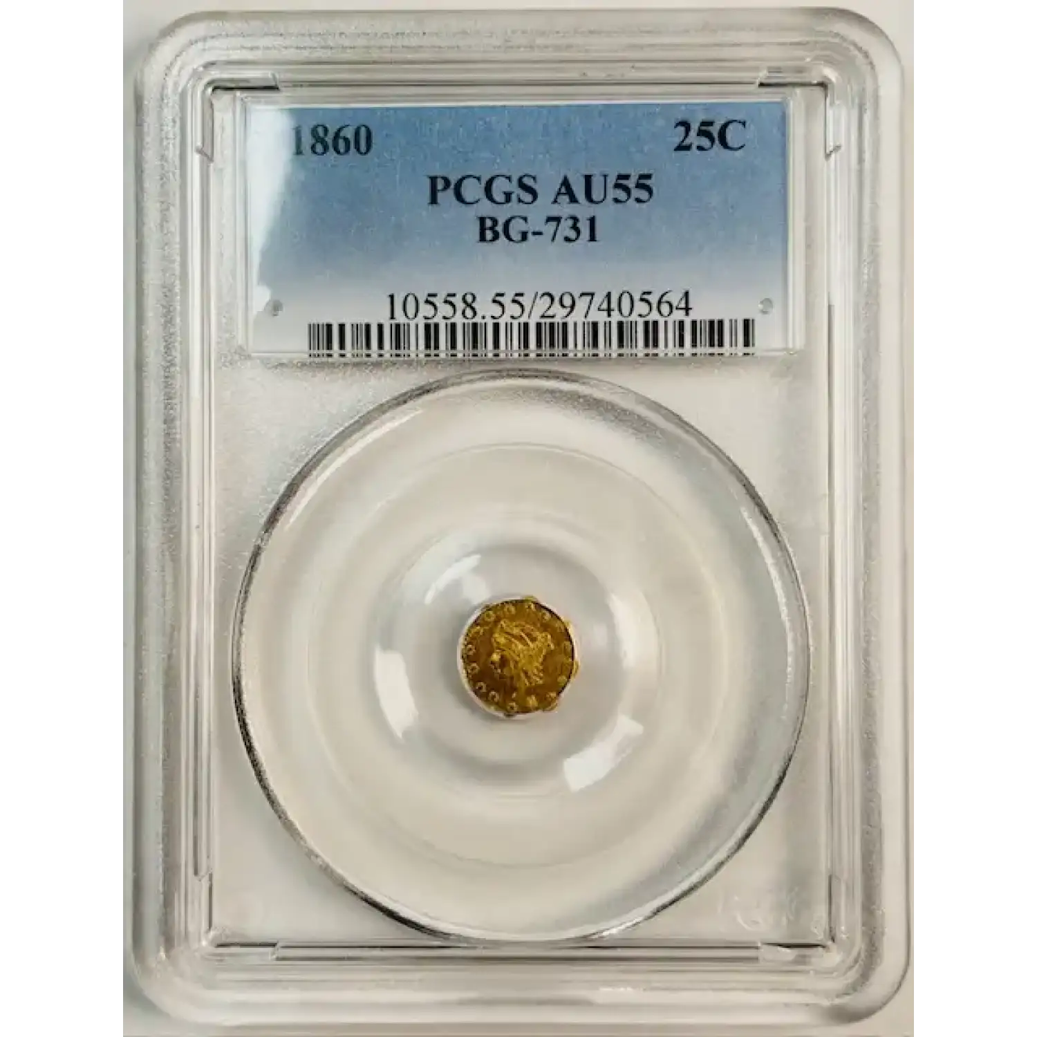 1860 Liberty Head Octagonal California Fractional Gold 1/4 Dollar PCGS AU-55 BG-731