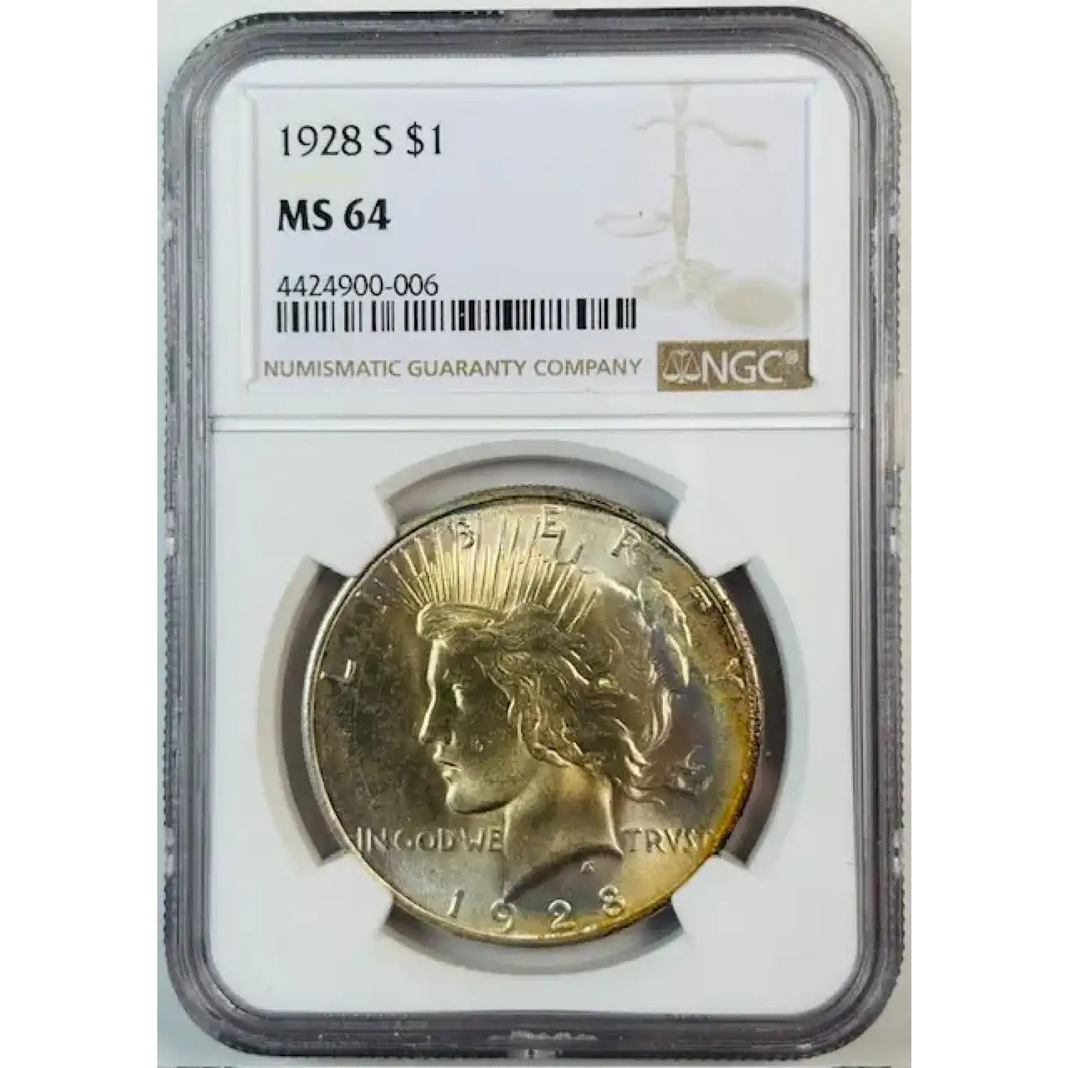 1928-S Peace Dollar NGC MS-64 Cool Toning!