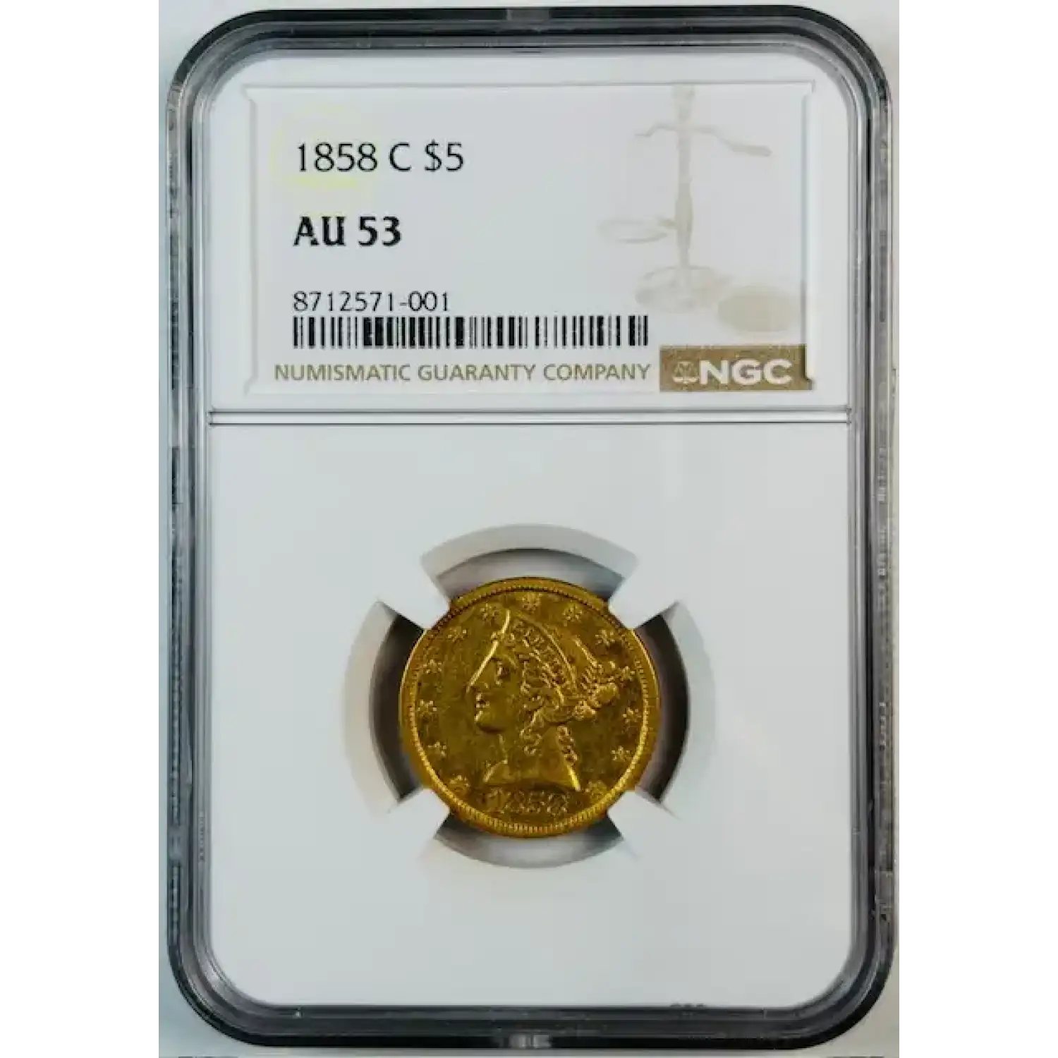 1858-C Gold Half Eagles Liberty Head NGC AU-53 Premium Quality!