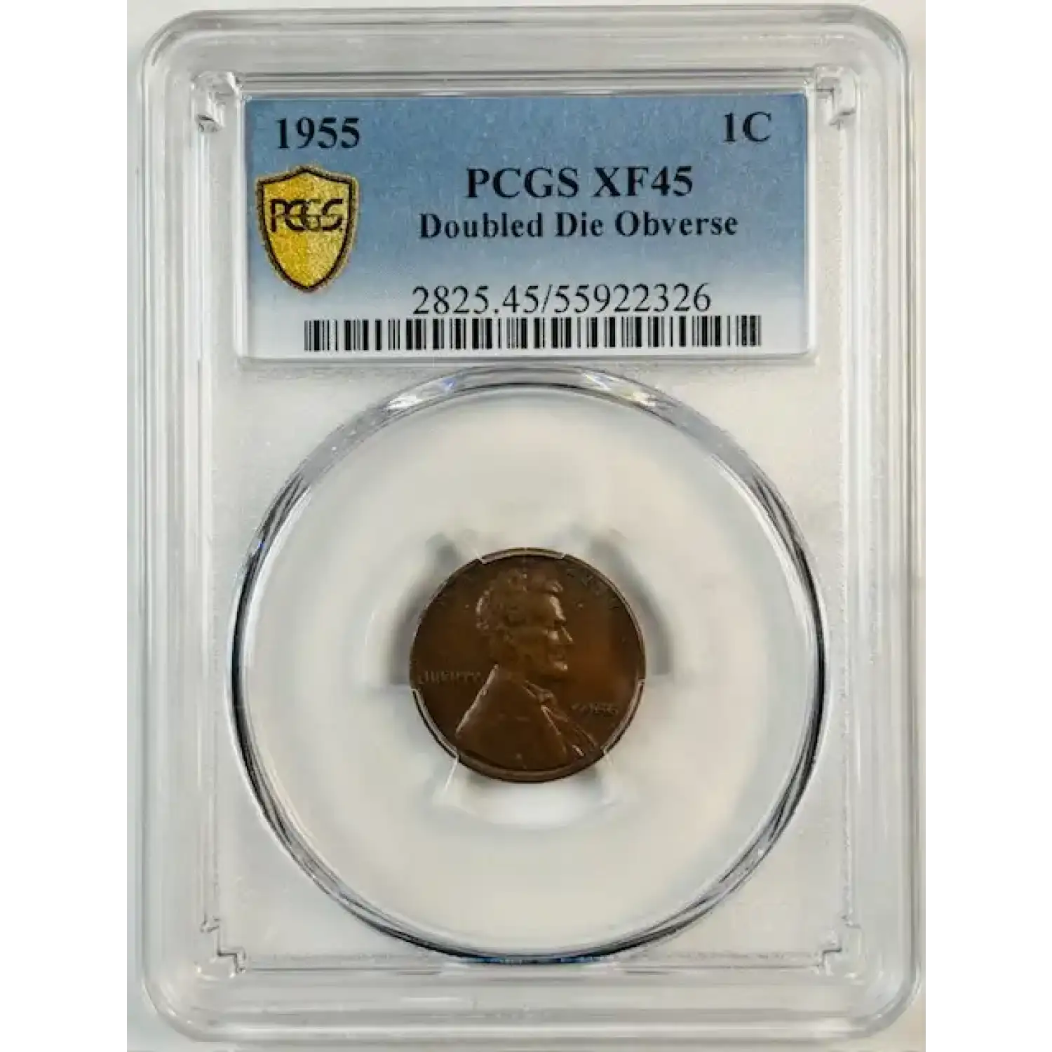 1955 Small Cents Lincoln, Wheat Ears Reverse PCGS XF-45 BN Doubled Die Obverse