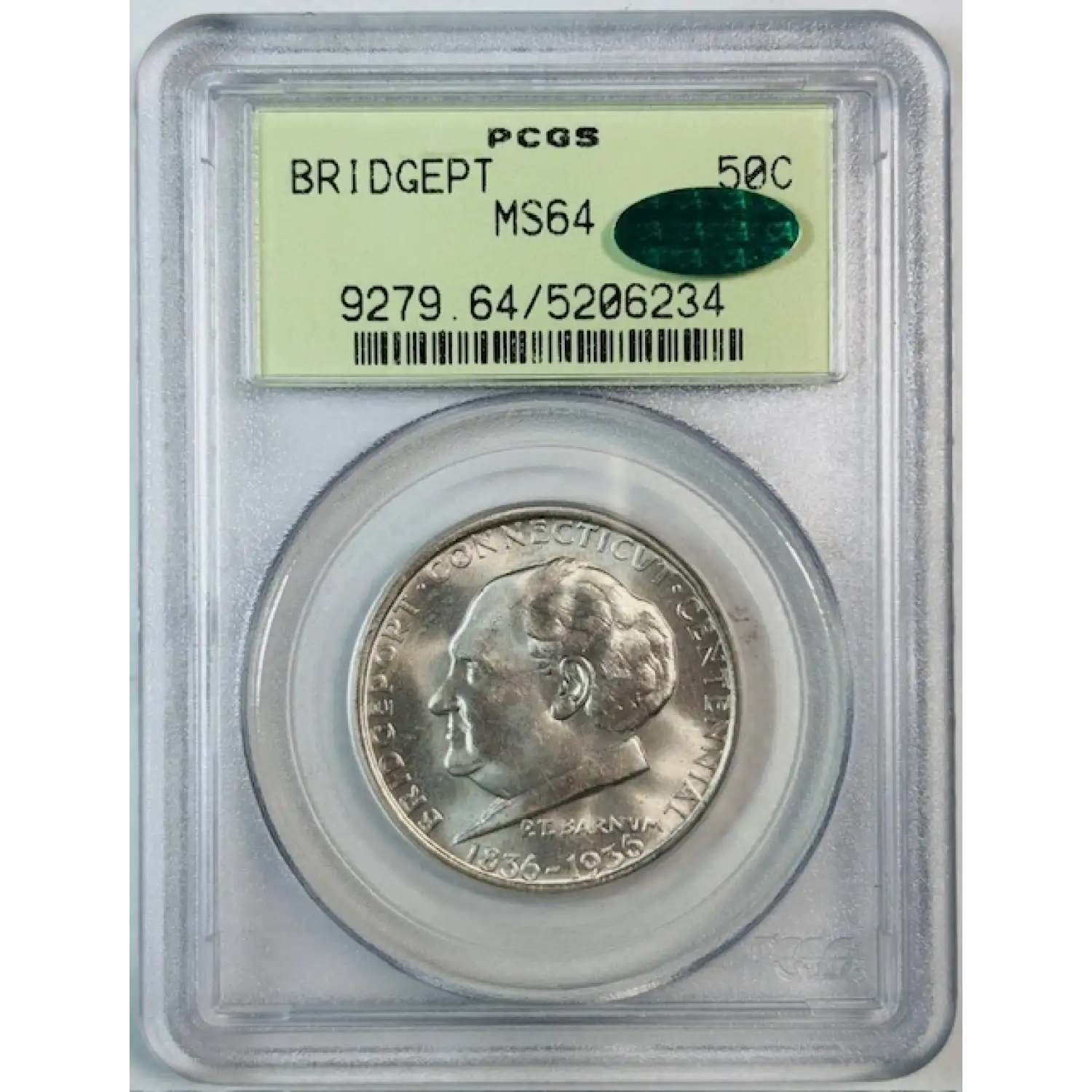 1936 Classic Commemorative Bridgeport, Connecticut, Centennial PCGS MS-64 OGH! CAC