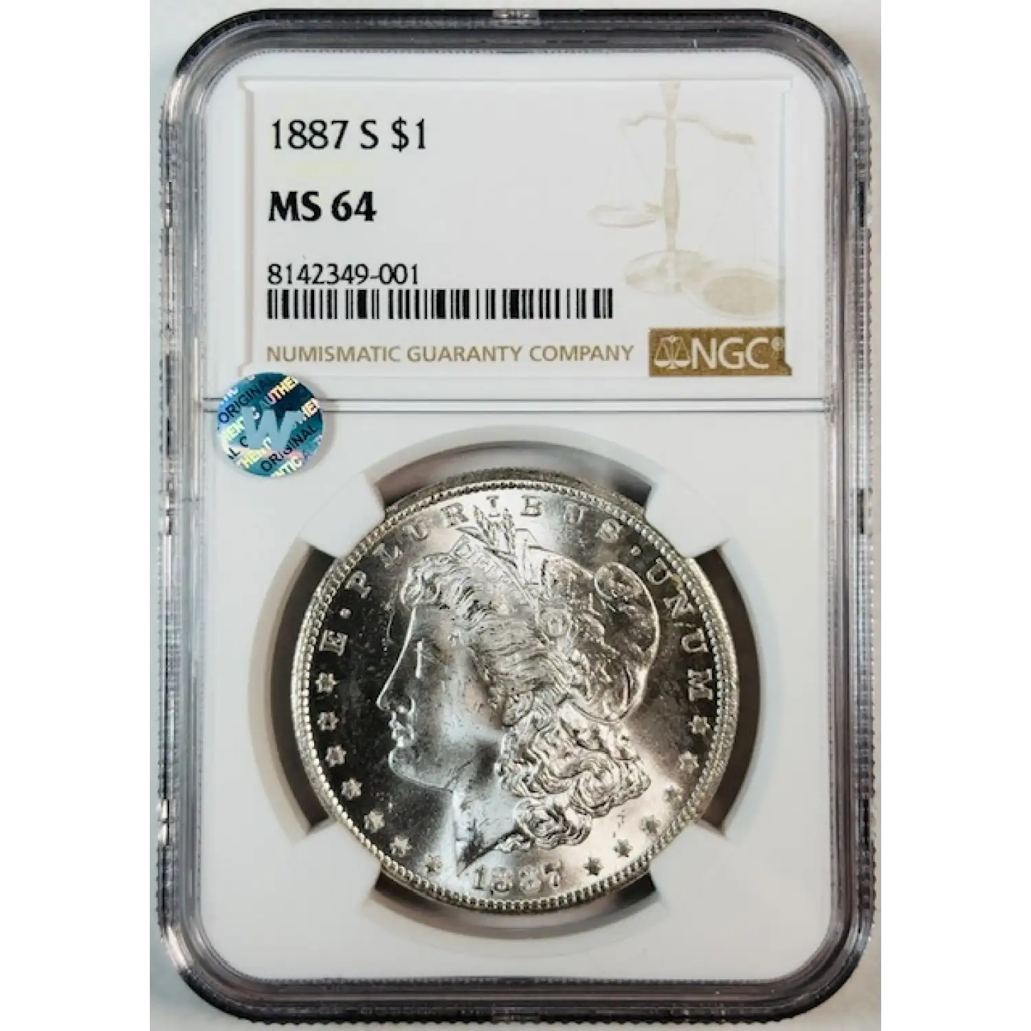 1887-S Morgan Silver Dollar NGC MS-64 Sight White