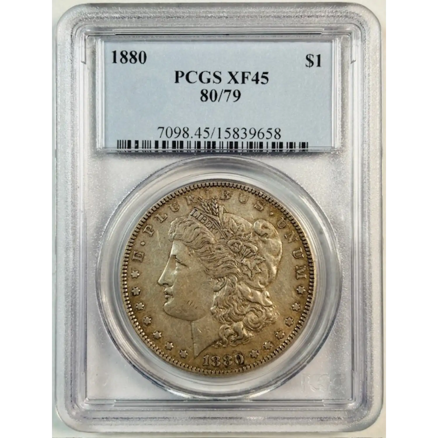 1880 Morgan Silver Dollar PCGS XF-45 80/79