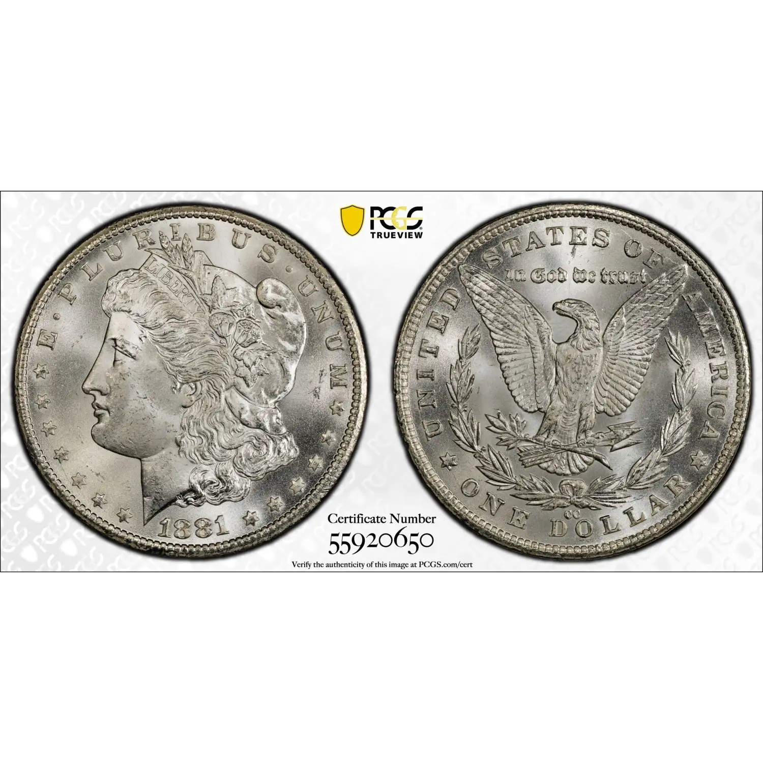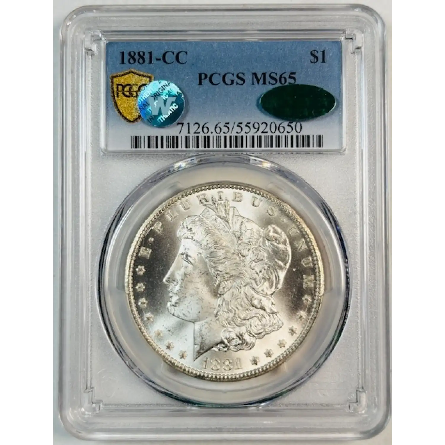 1881-CC Morgan Silver Dollar PCGS MS-65 Low CAC Pop! CAC, Sight White