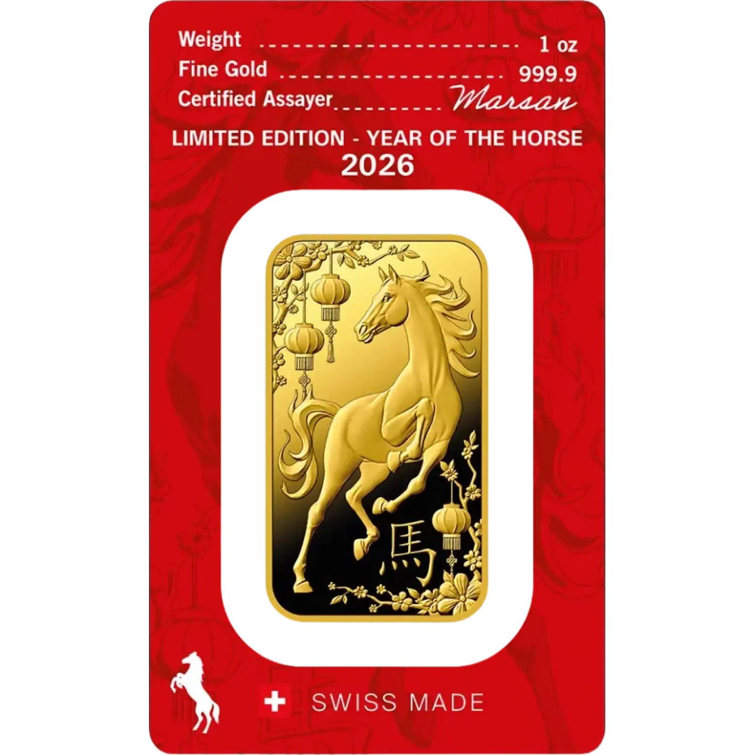 1oz Heraeus Minted Gold Bar - Year of The Horse