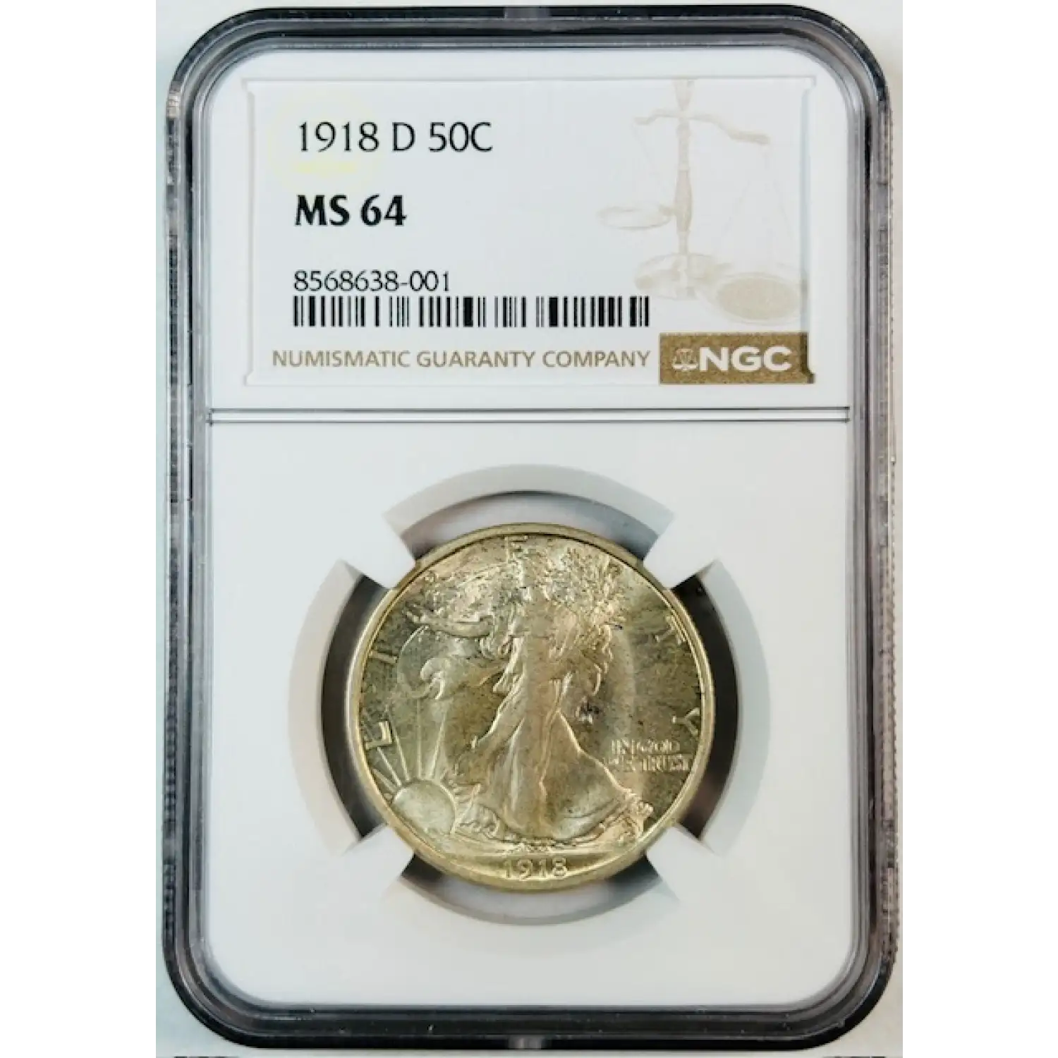 1918-D Walking Liberty Half Dollar NGC MS-64 Fresh Coin!