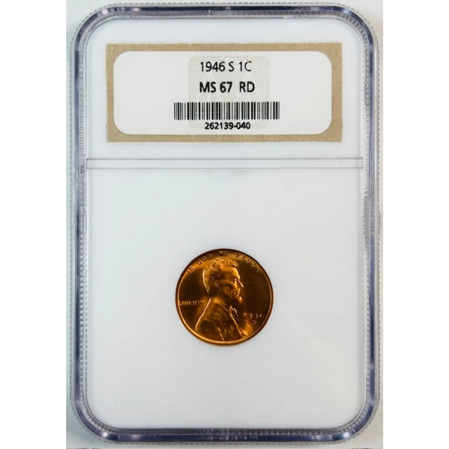 1946-S Small Cents Lincoln, Wheat Ears Reverse NGC MS-67 RD