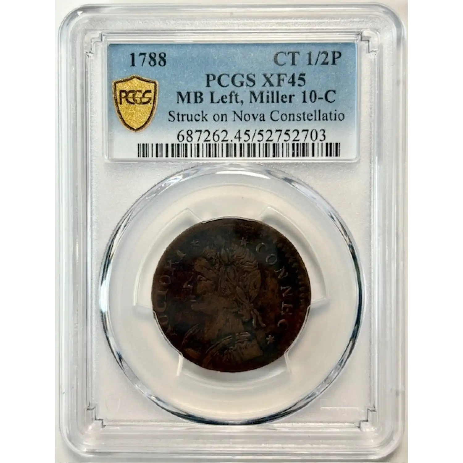 1788 Post Colonial Issues Connecticut - Copper PCGS XF-45 BN Mailed Bust Left Miller 10-C Stuck on Nova Constellatio