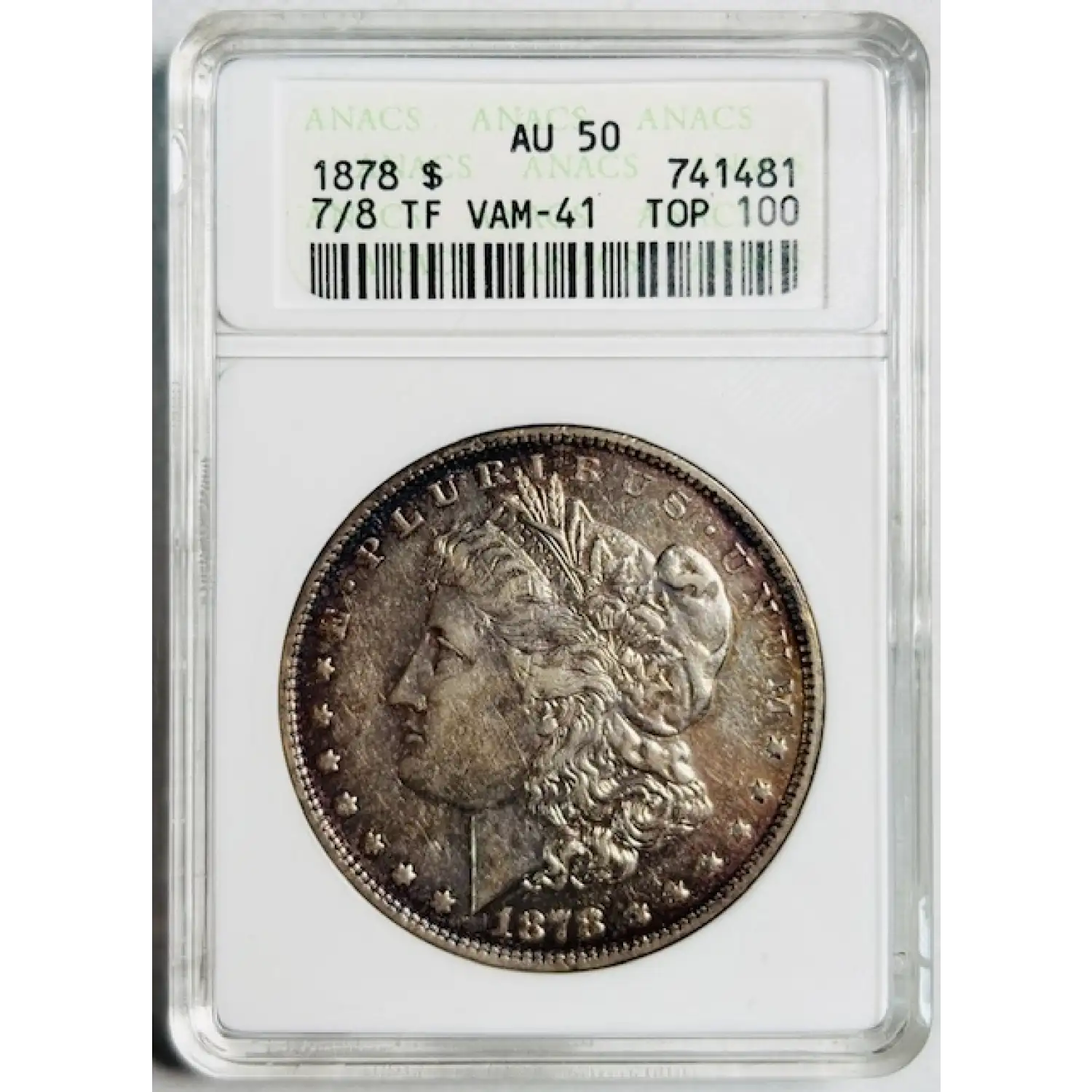 1878 Morgan Silver Dollar ANACS AU-50 7/8 TF Vam-41 Top 100