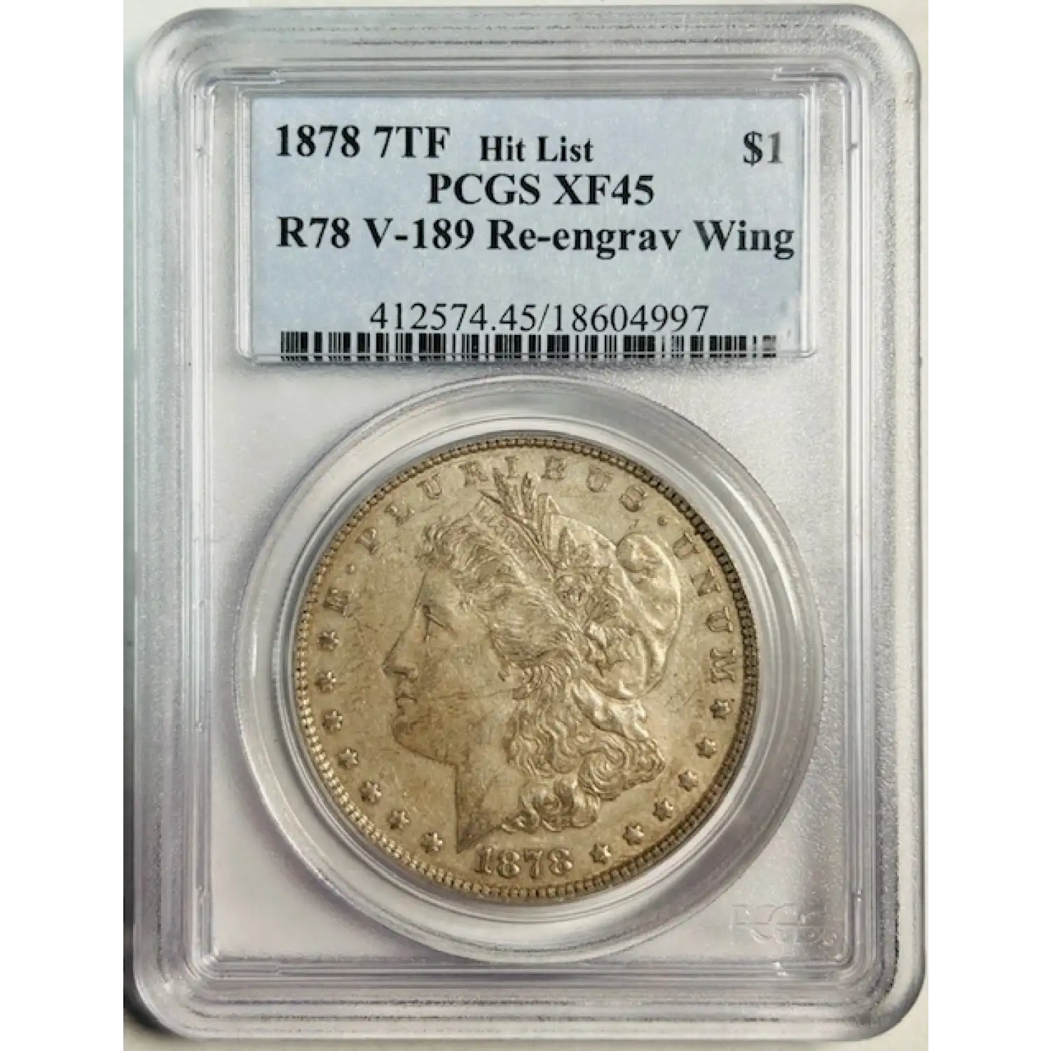 1878 Morgan Silver Dollar PCGS XF-45 7TF Rev of 1878 R78 VAM-189 Re-Engraved Wing