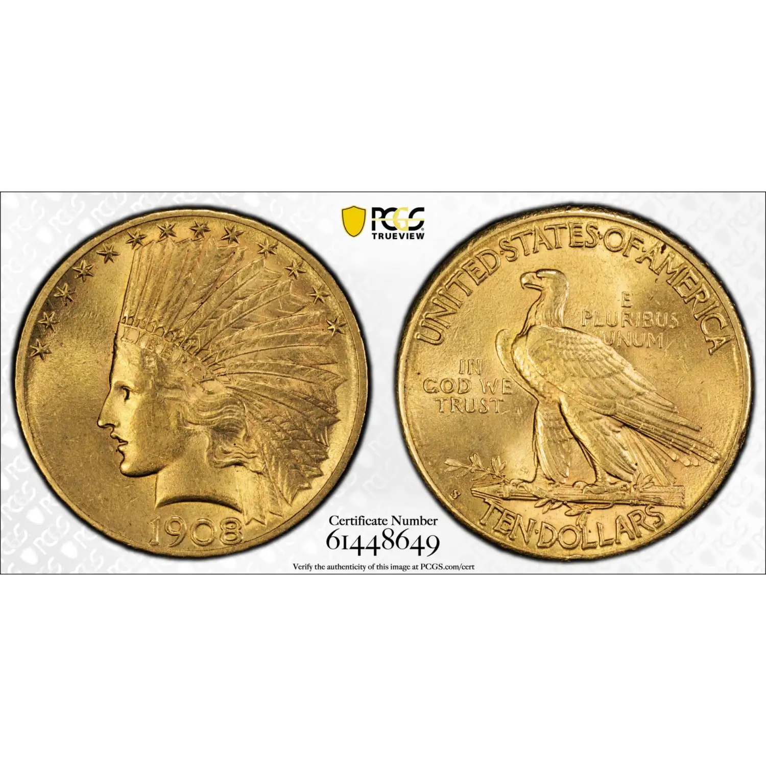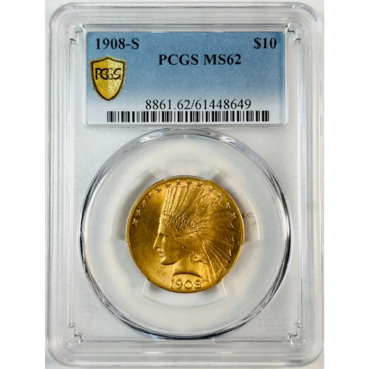 1908-S Gold Eagles $10 Indian Head PCGS MS-62