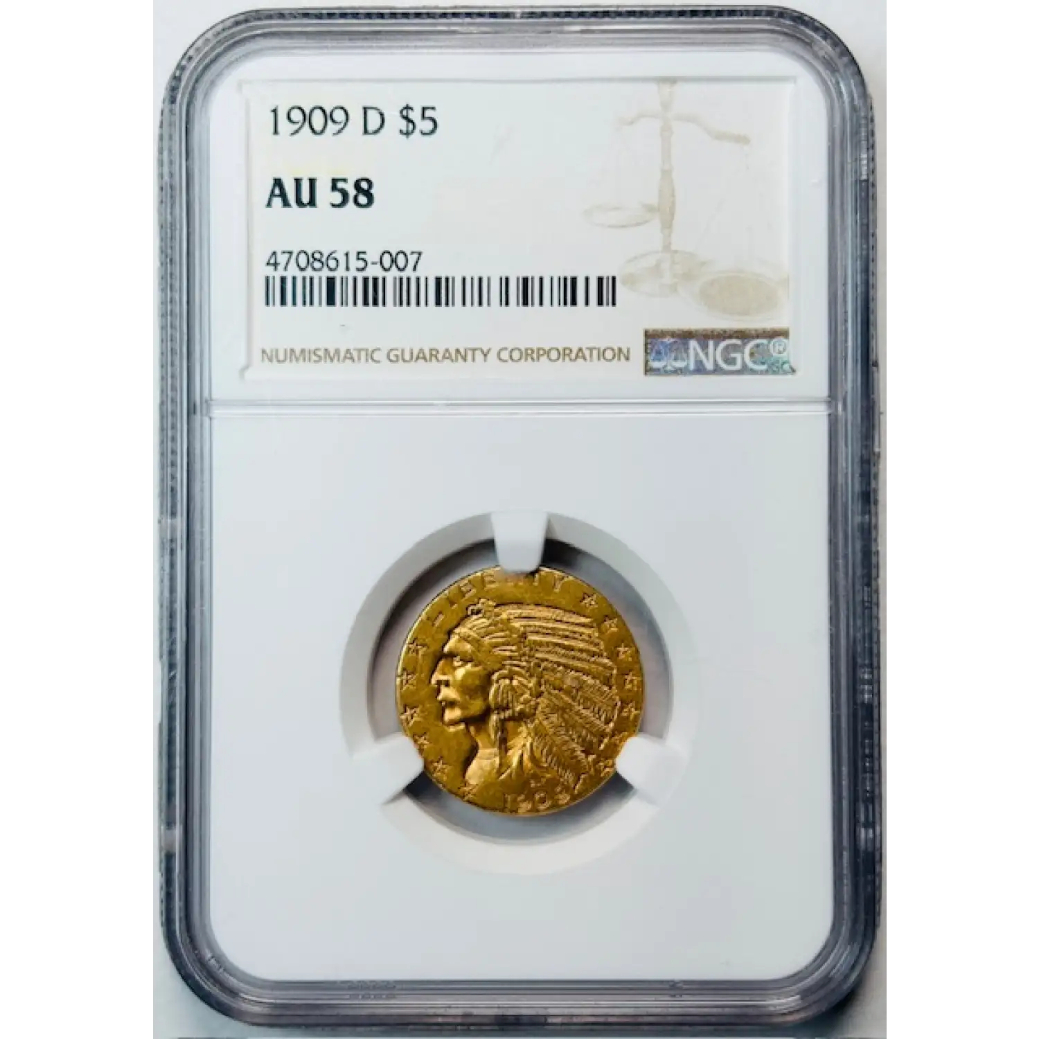 1909-D Gold Half Eagles $5 Indian Head NGC AU-58