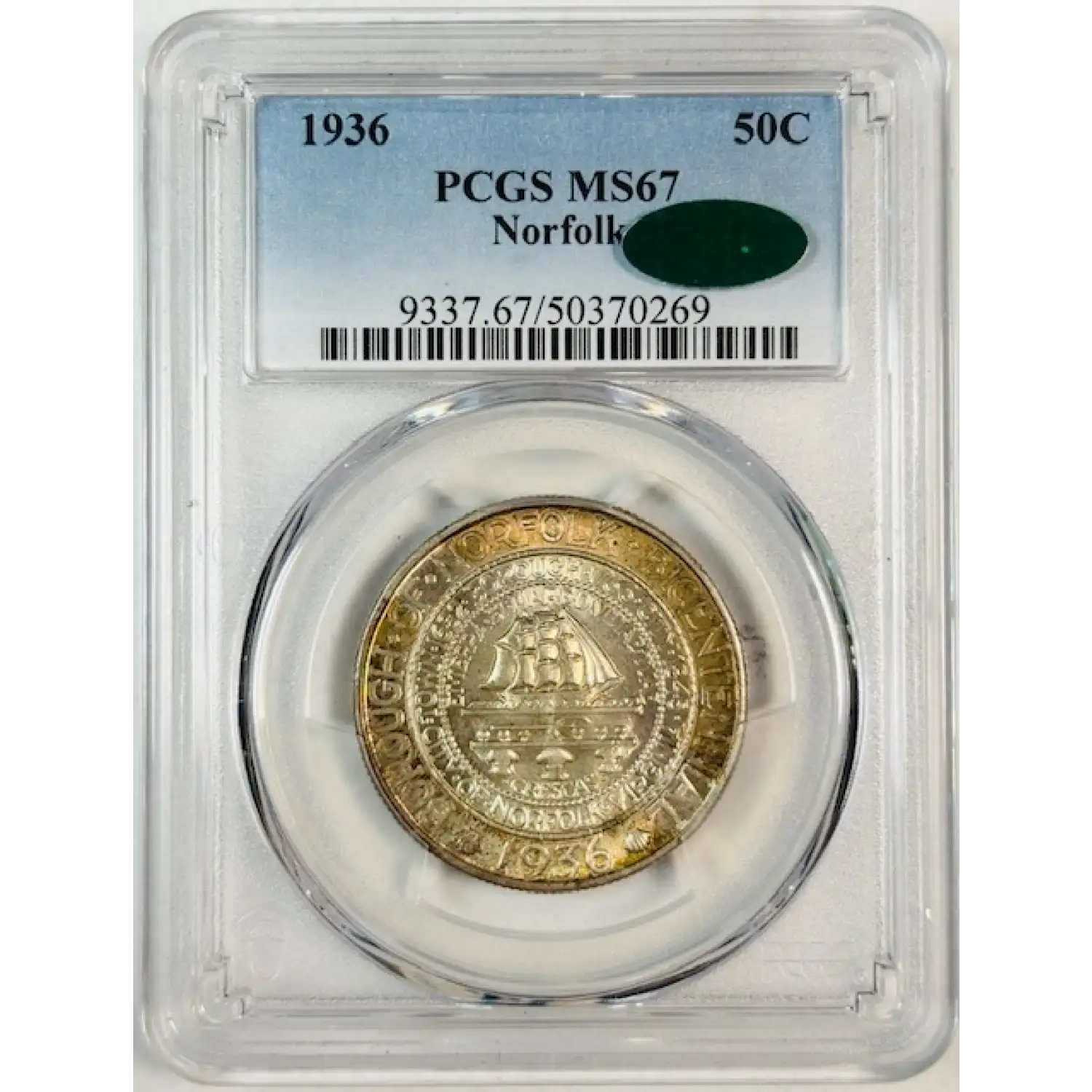 1936 Classic Commemorative Norfolk, Virginia, Bicentennial PCGS MS-67 CAC