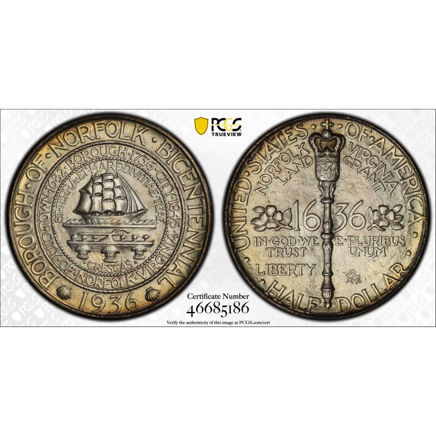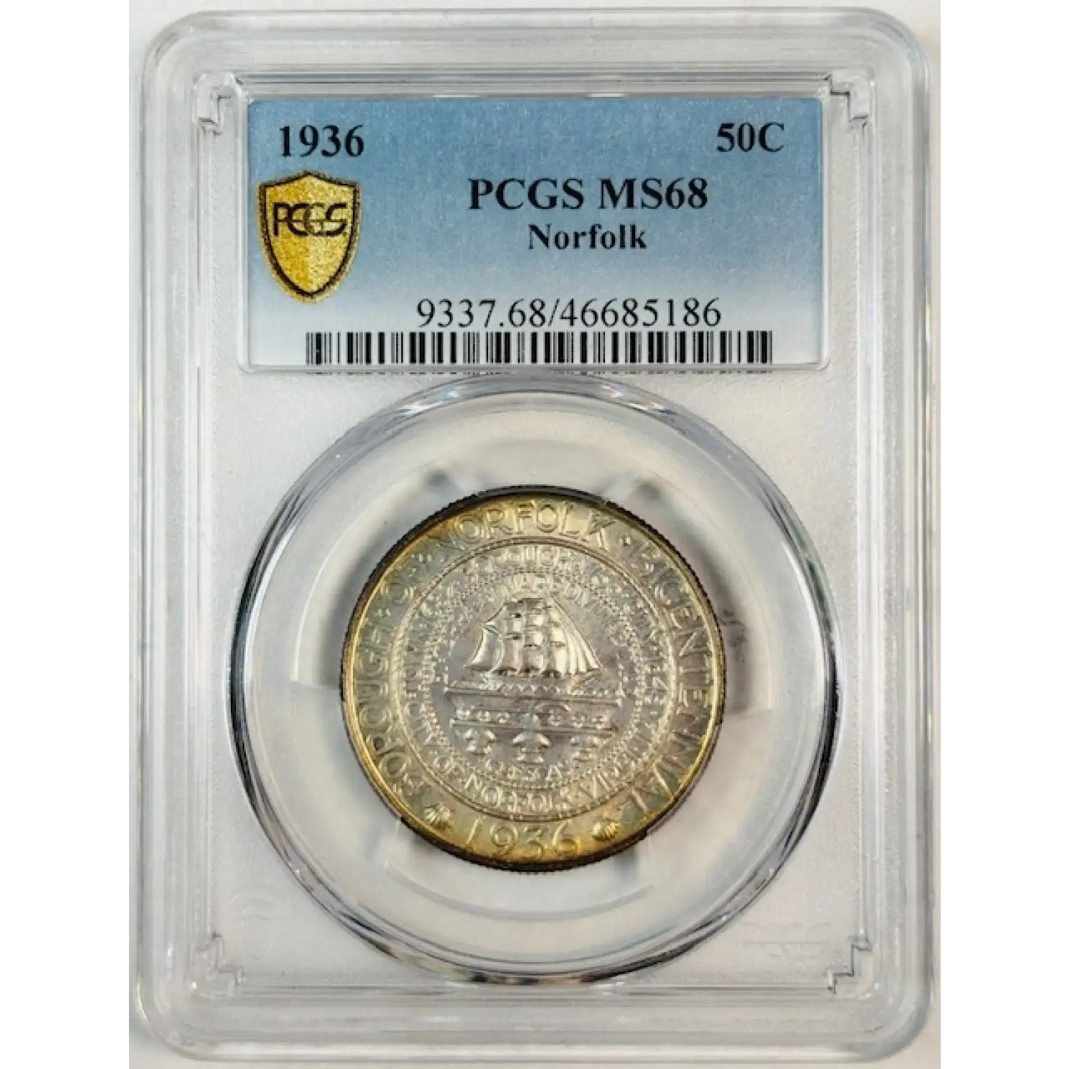 1936 Classic Commemorative Norfolk, Virginia, Bicentennial PCGS MS-68