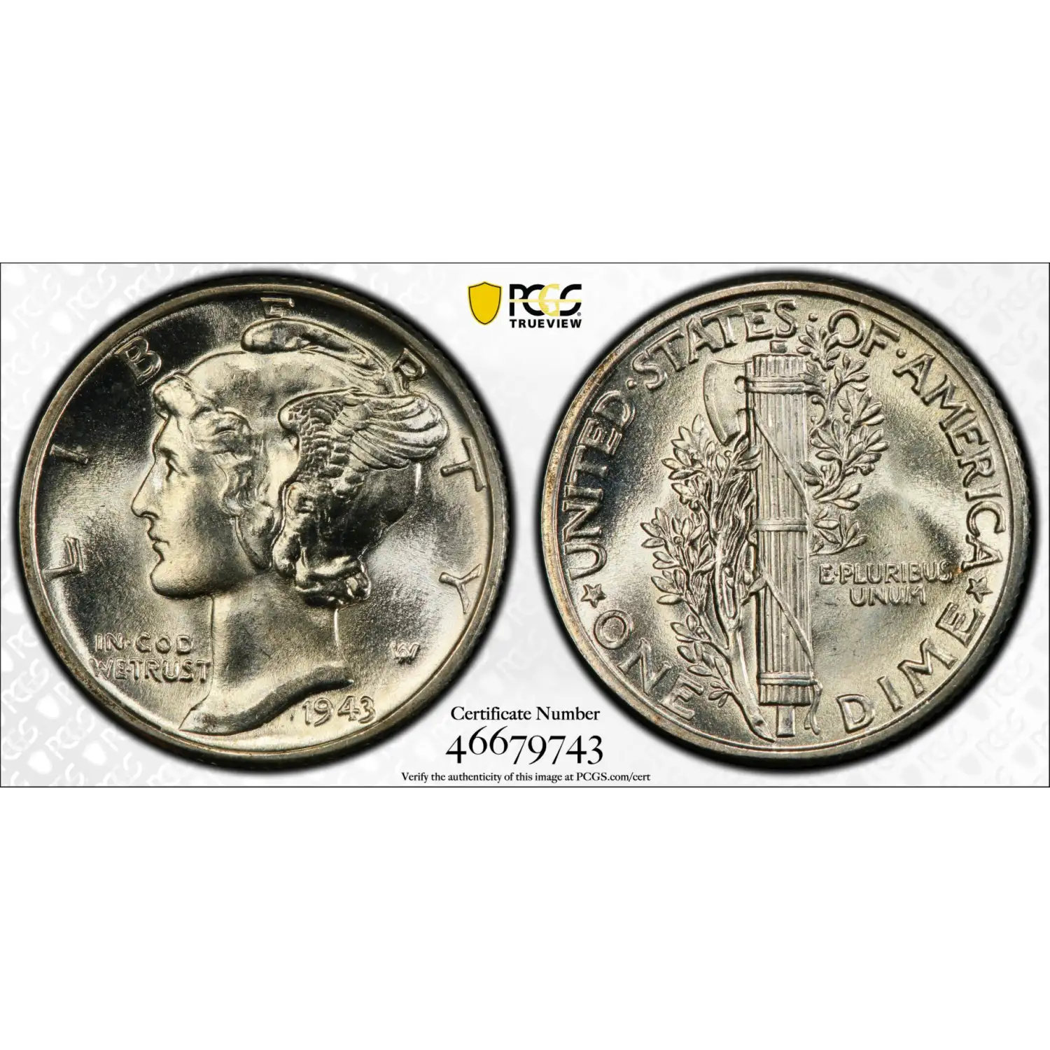 1943 Mercury Dime PCGS MS-67 FB CAC