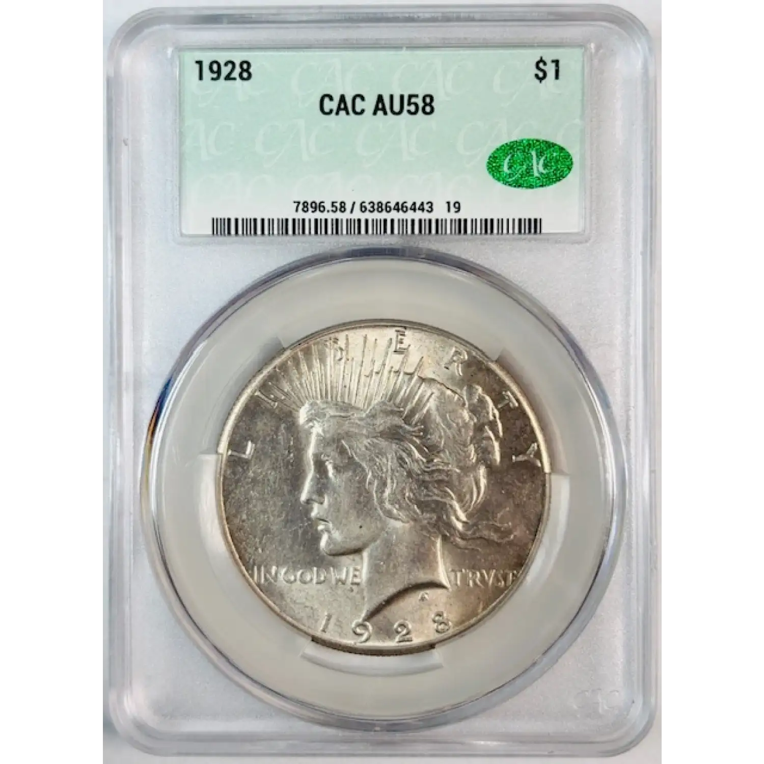 1928 Peace Dollar CACG AU 58 CAC