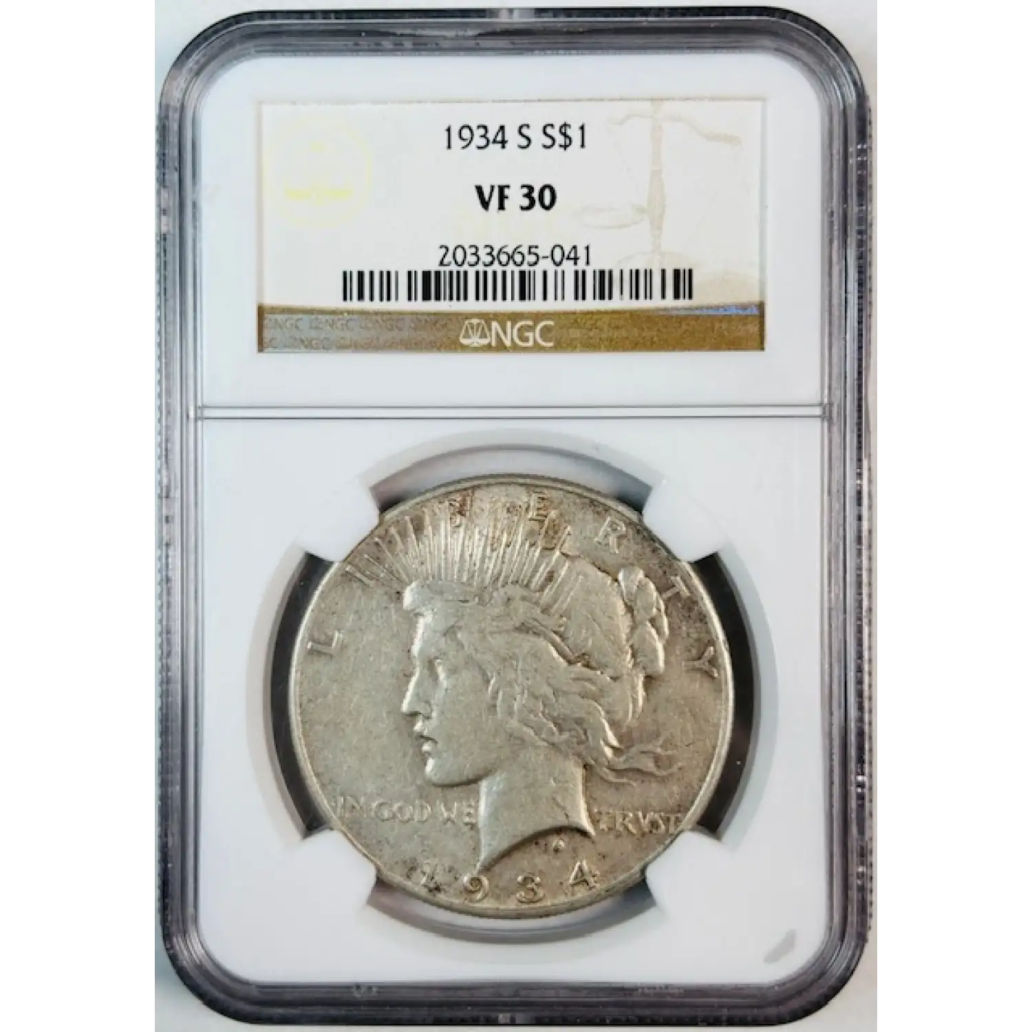 1934-S Peace Dollar NGC VF-30