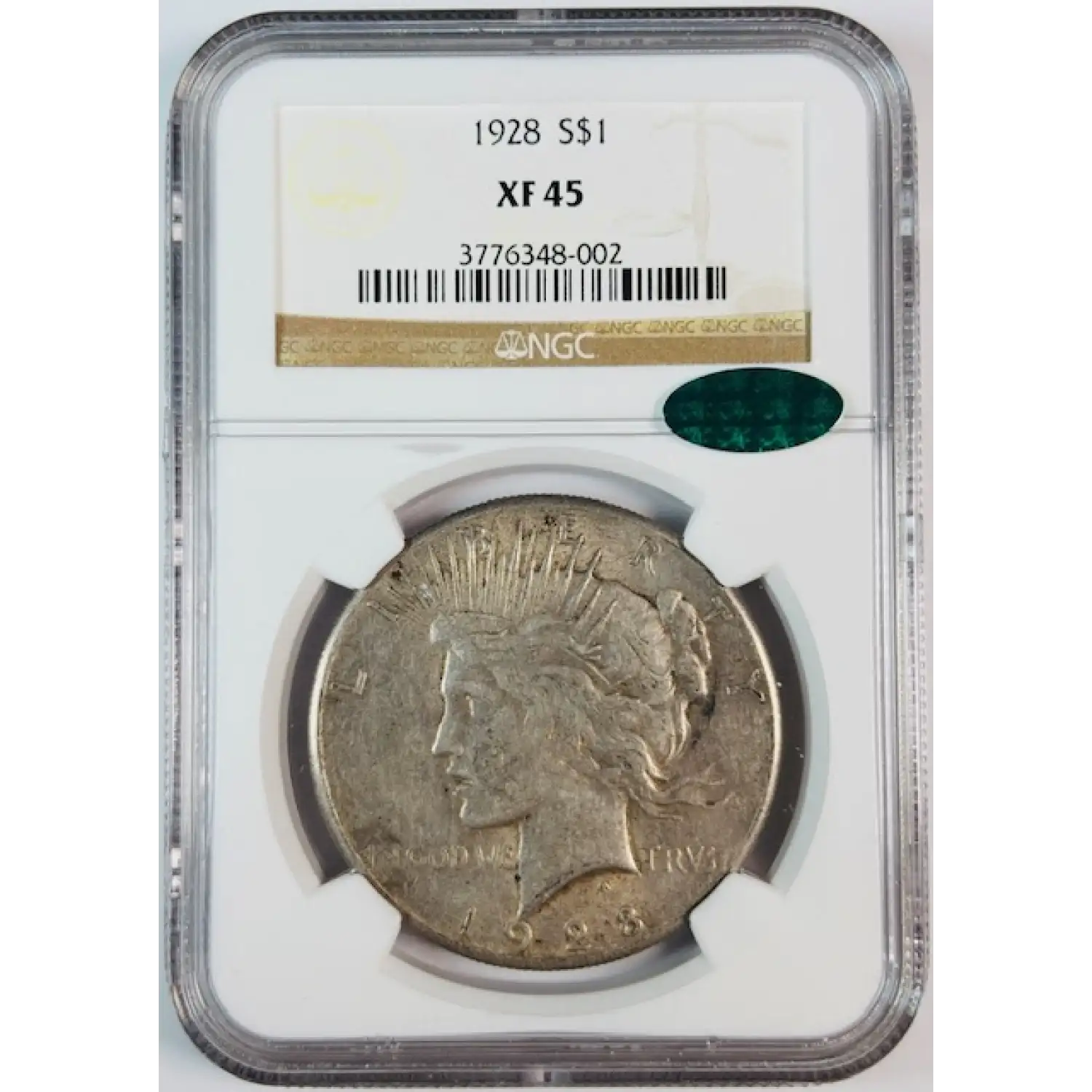 1928 Peace Dollar NGC XF-45 Low CAC Pop! CAC