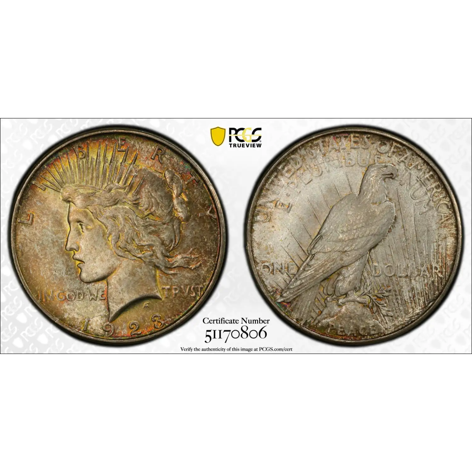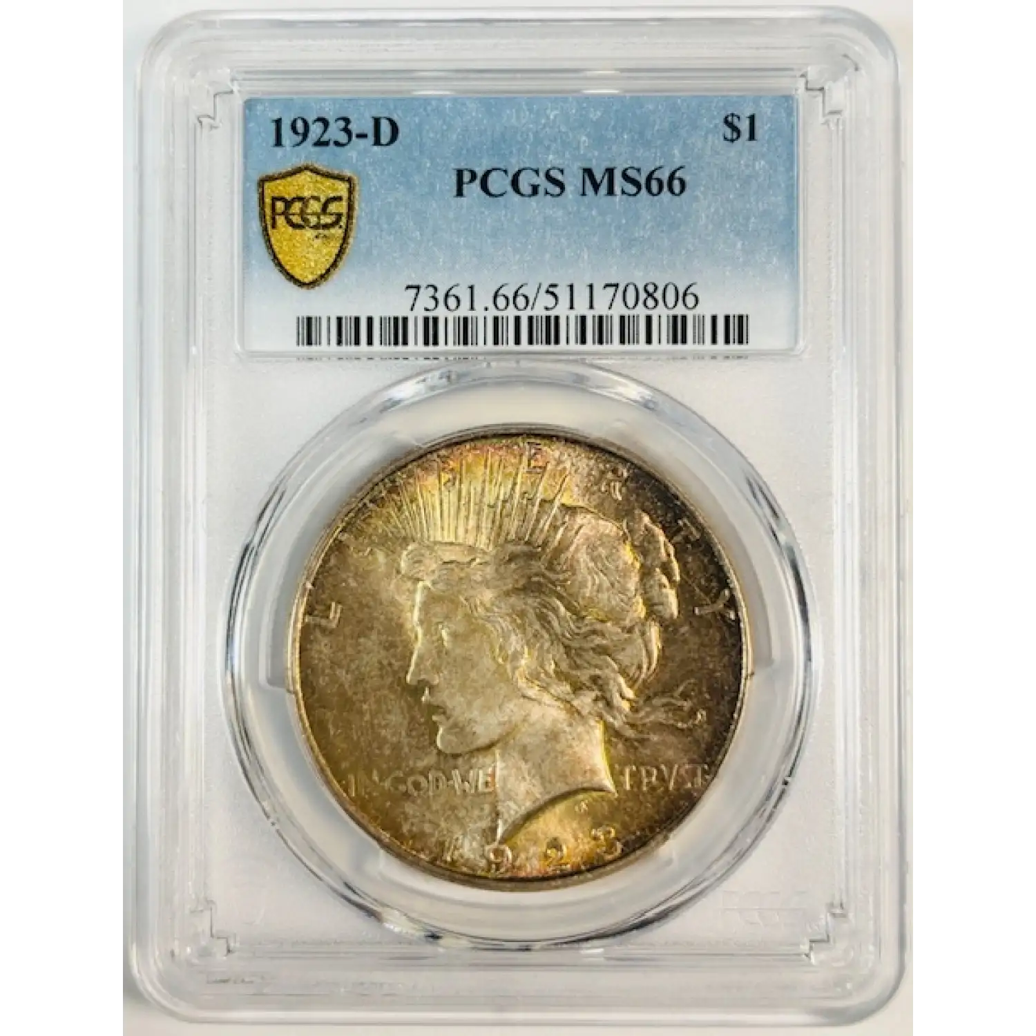 1923-D Peace Dollar PCGS MS-66 Pretty Rainbow!