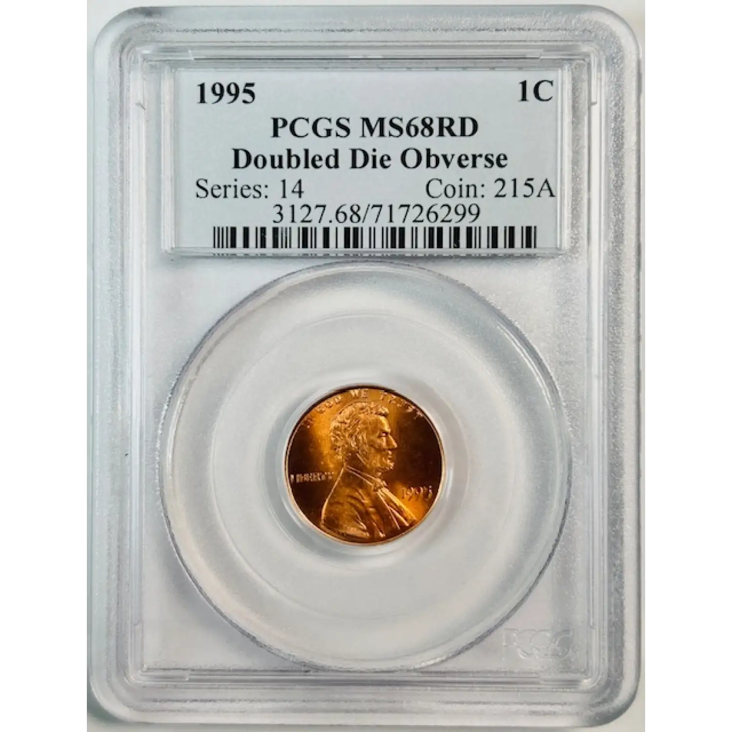 1995 Small Cents Lincoln, Memorial Reverse PCGS MS-68 RD Doubled Die Obverse