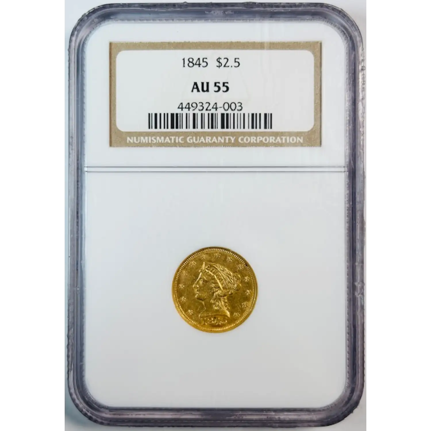 1845 $2.50 Gold Liberty Head Quarter Eagle NGC AU-55