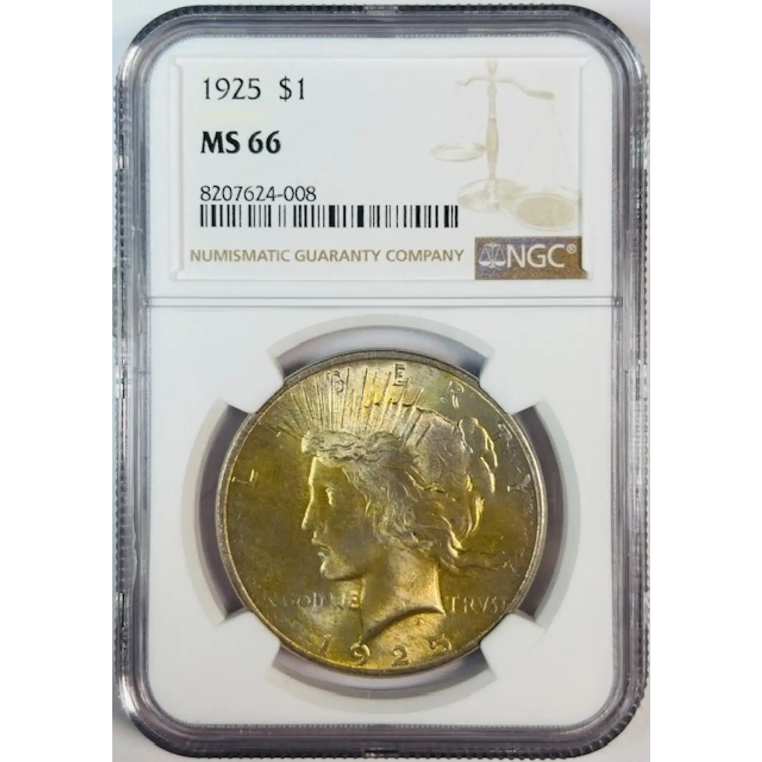 1925 Peace Dollar NGC MS-66 Gold Toning!