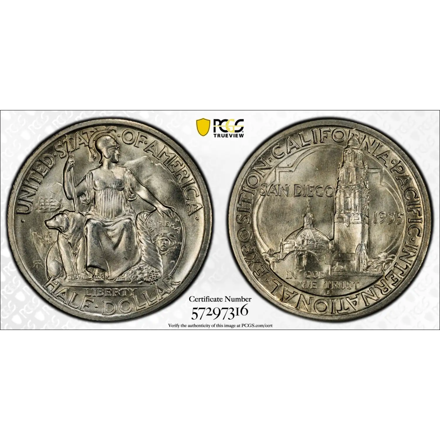 1935-S Classic Commemorative California Pacific International Exposition PCGS MS-66 San Diego CAC