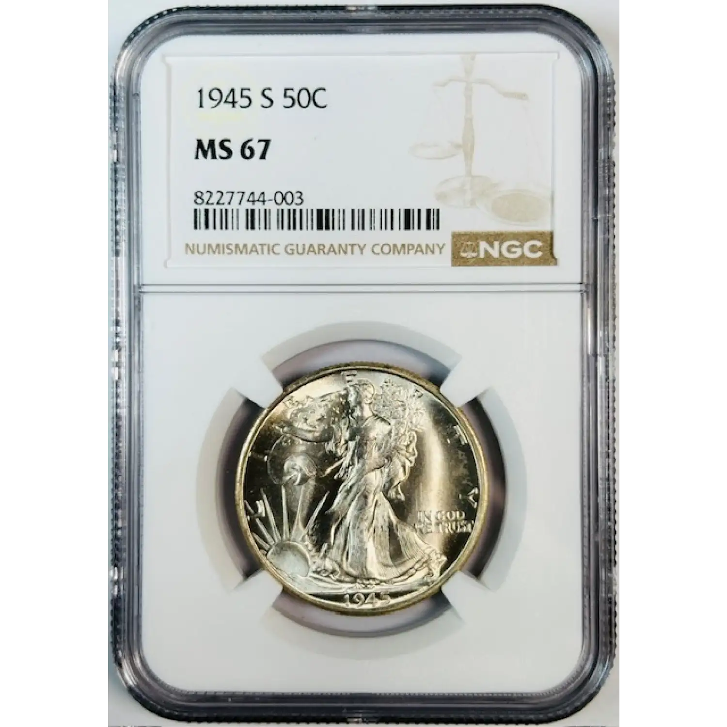 1945-S Walking Liberty Half Dollar NGC MS-67 Nice Luster!