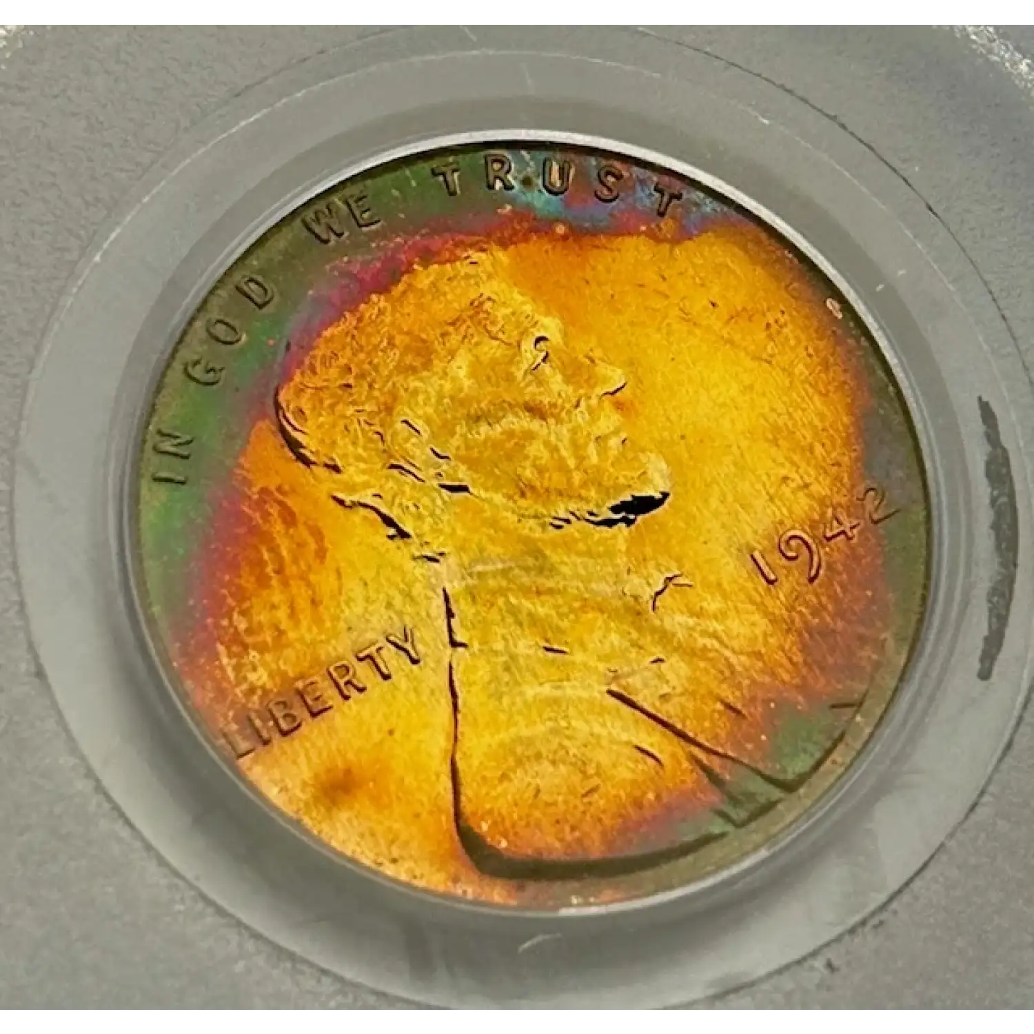 1942 Small Cents Lincoln, Wheat Ears Reverse PCGS PR-64 RB Rainbow Toned!