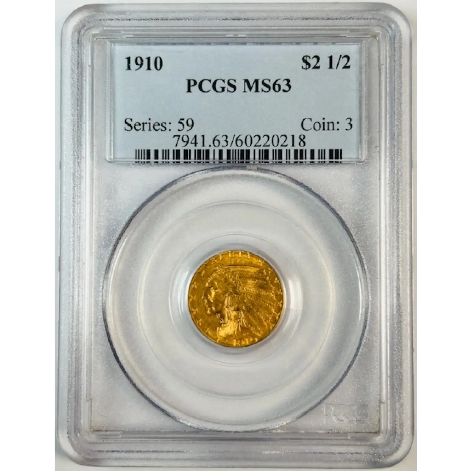 1910 Gold Quarter Eagles $2 1/2 Indian Head PCGS MS-63