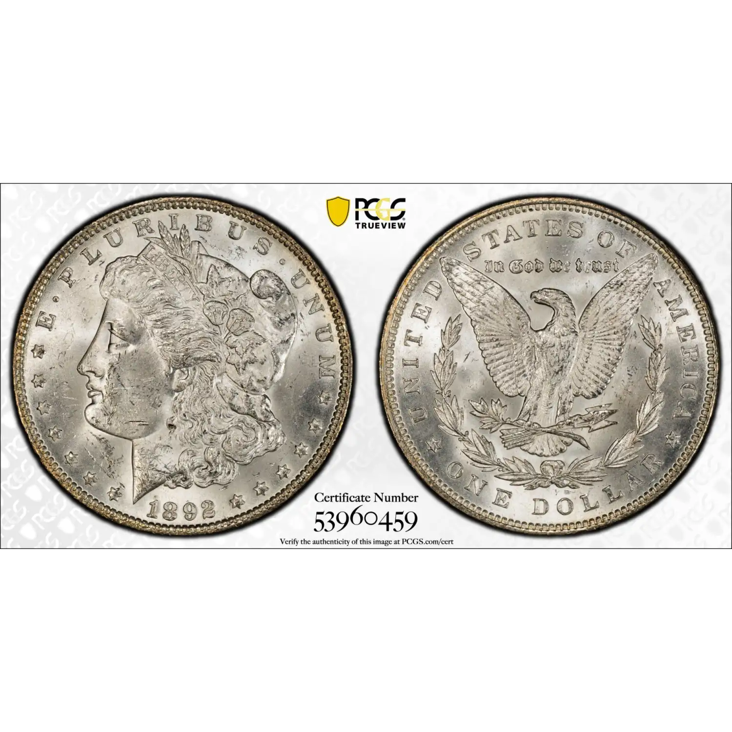 1892 Morgan Silver Dollar PCGS MS-63