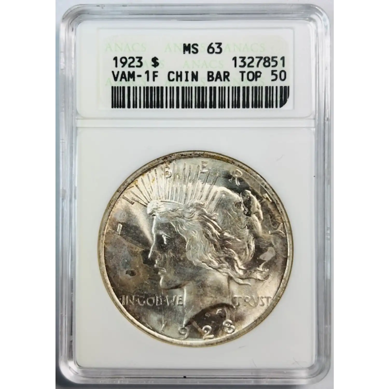 1923 Peace Dollar ANACS MS-63 VAM-1F Chin Bar