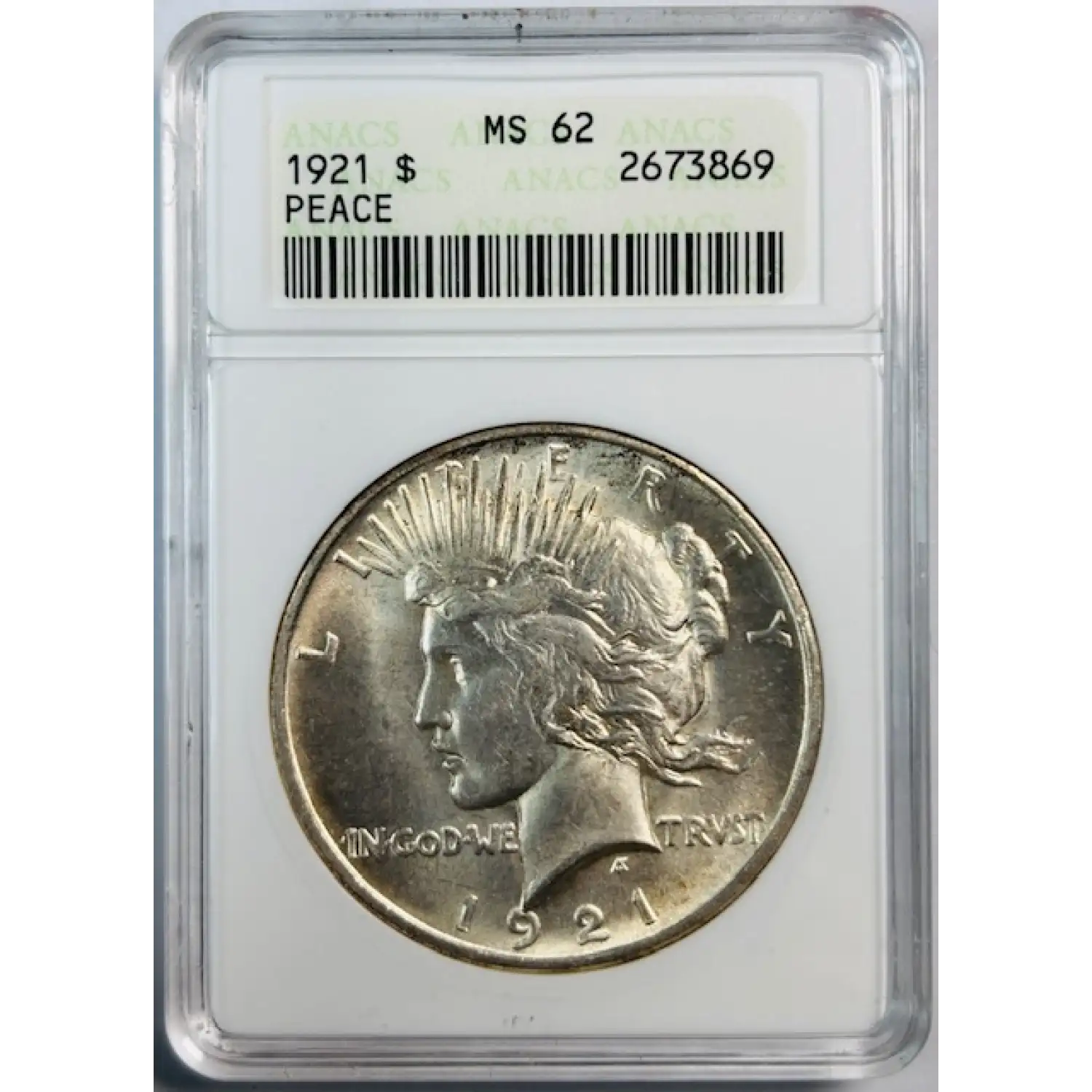 1921 Peace Dollar ANACS MS-62 High Relief