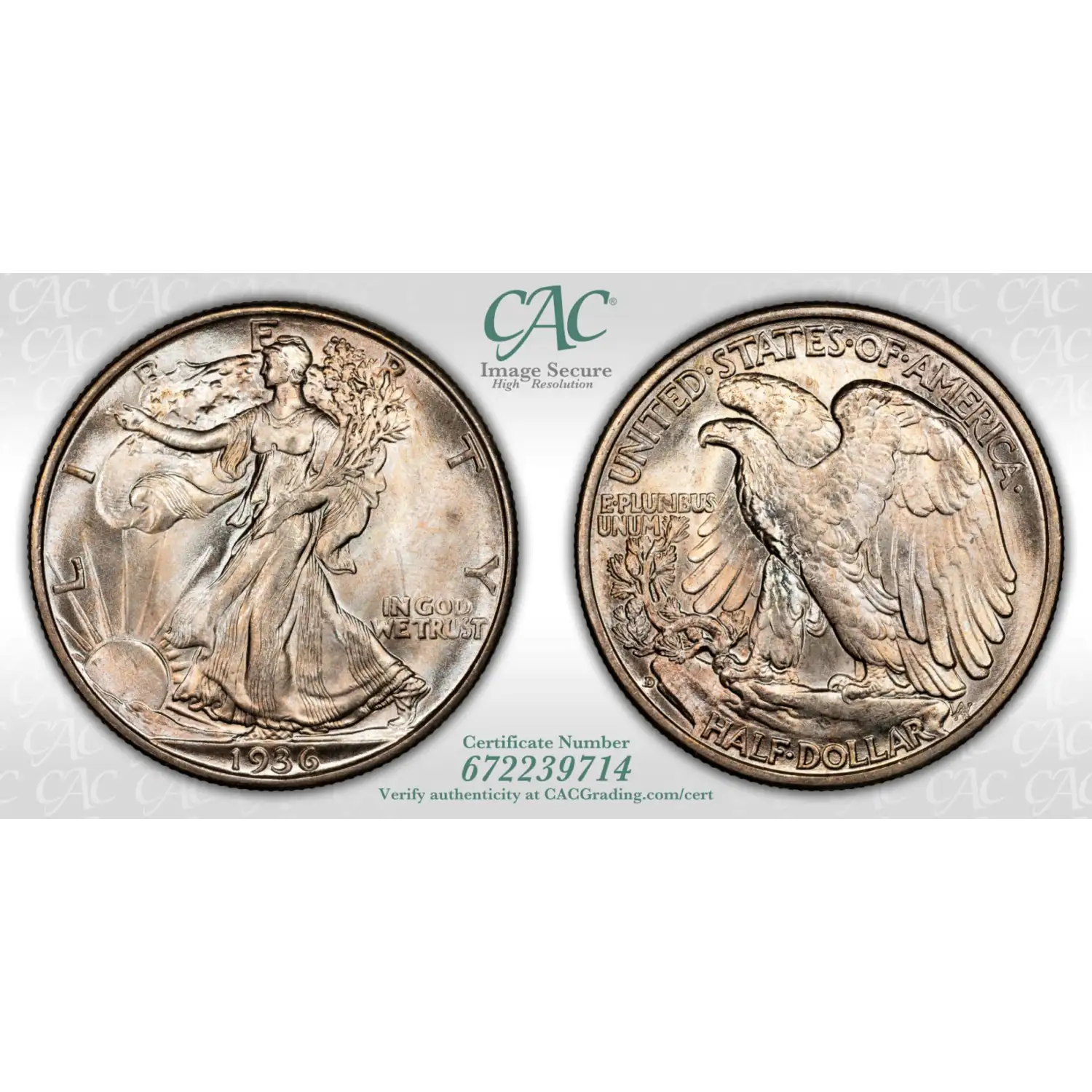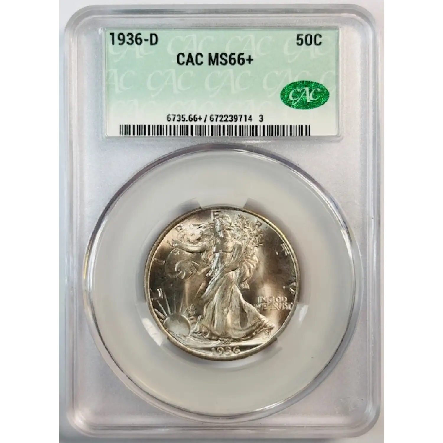 1936-D Walking Liberty Half Dollar CACG MS 66+ Wow Luster! CAC