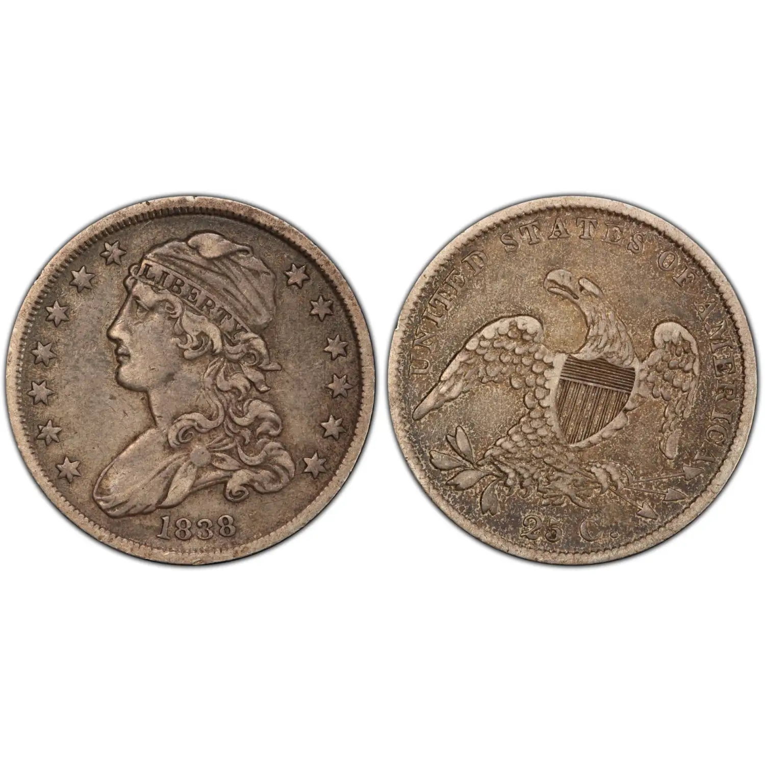 1838 Capped Bust Quarter Dollars PCGS VF-35 Capped Bust