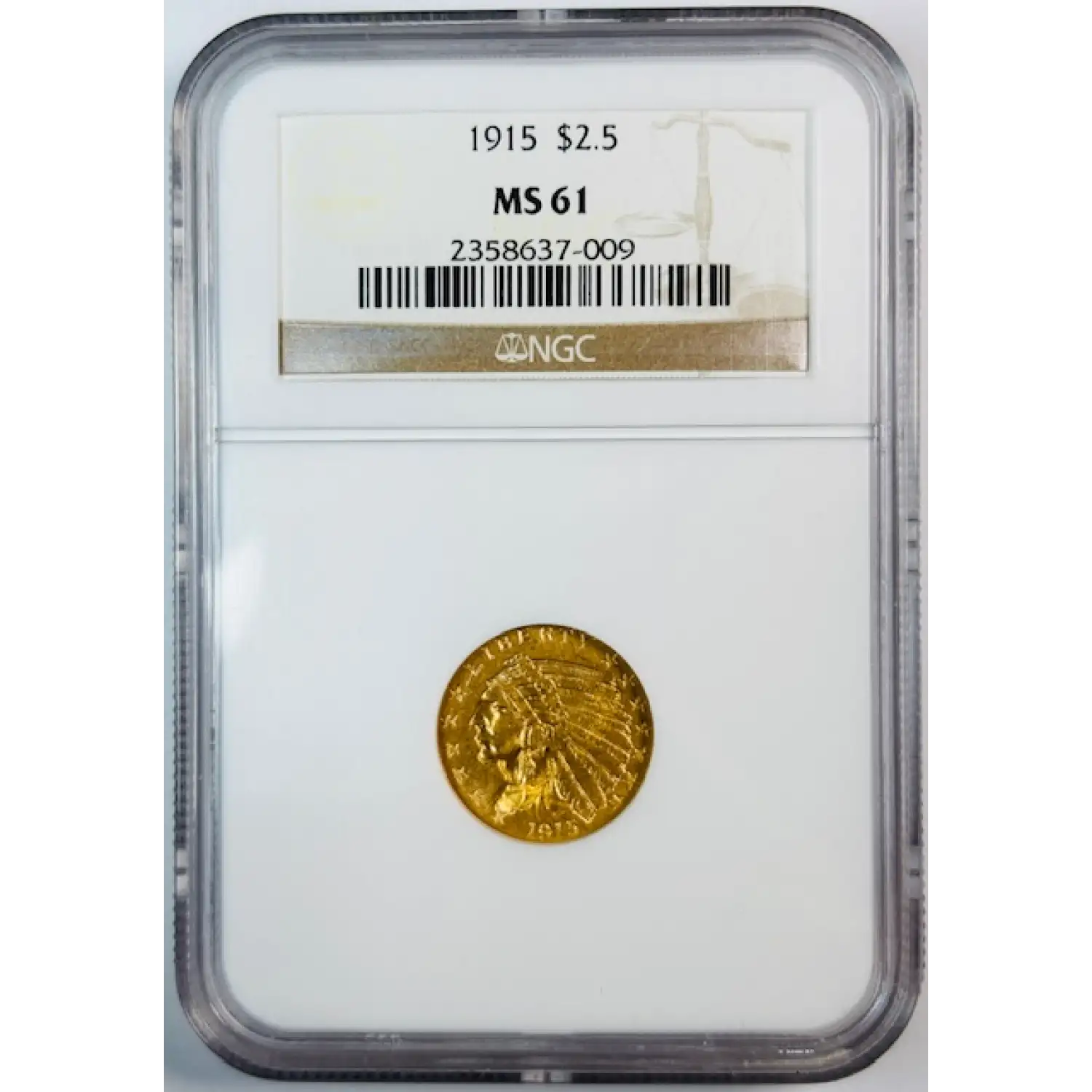 1915 Gold Quarter Eagles $2 1/2 Indian Head NGC MS-61 Premium Quality!