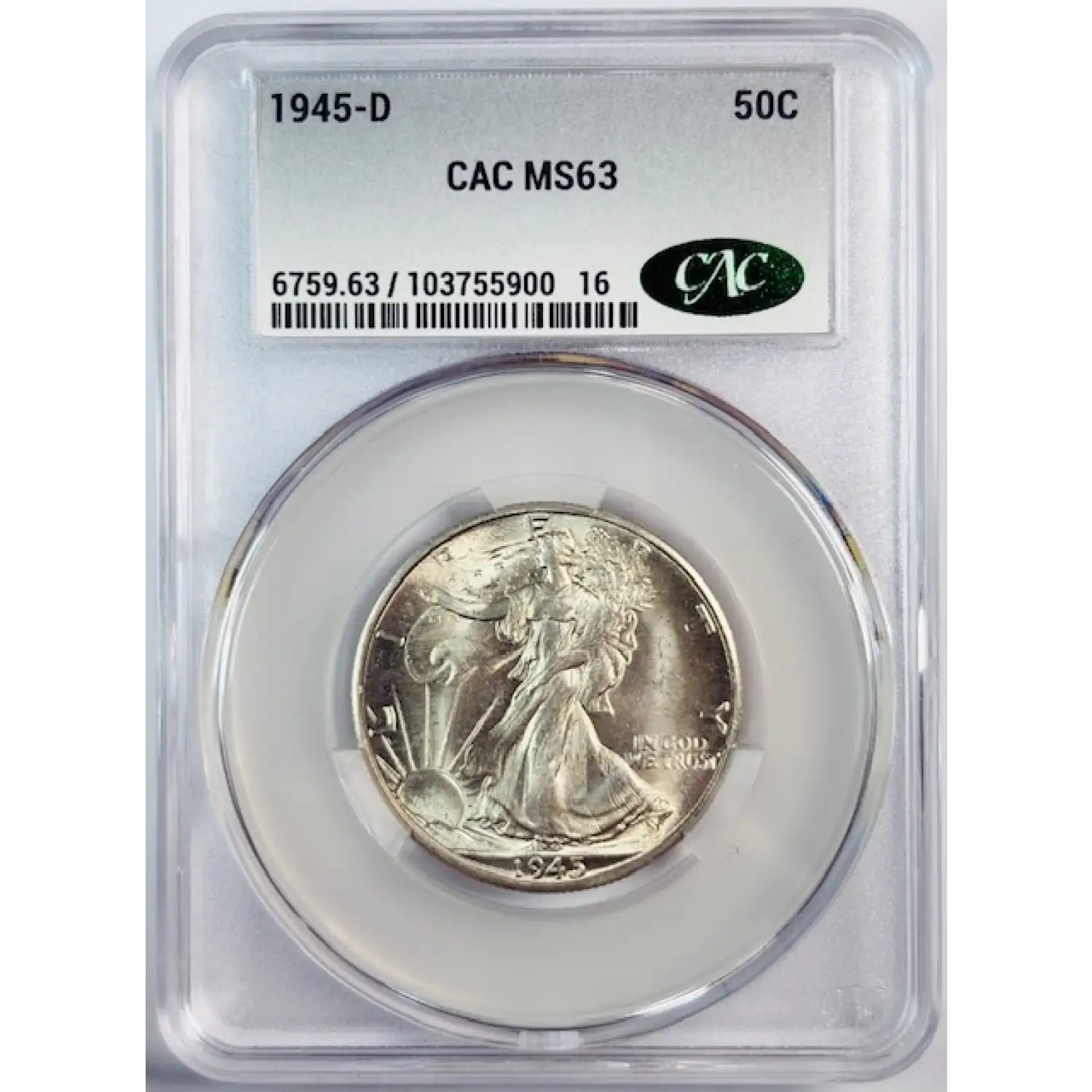 1945-D Walking Liberty Half Dollar CACG MS 63 CAC