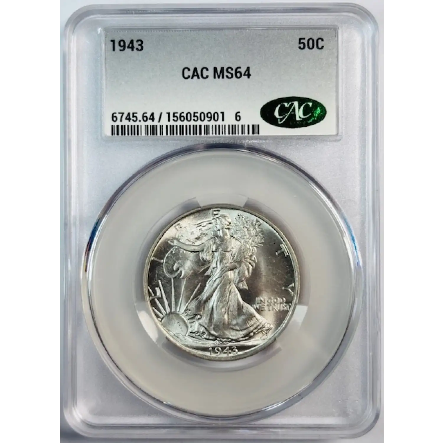 1943 Walking Liberty Half Dollar CACG MS 64 CAC