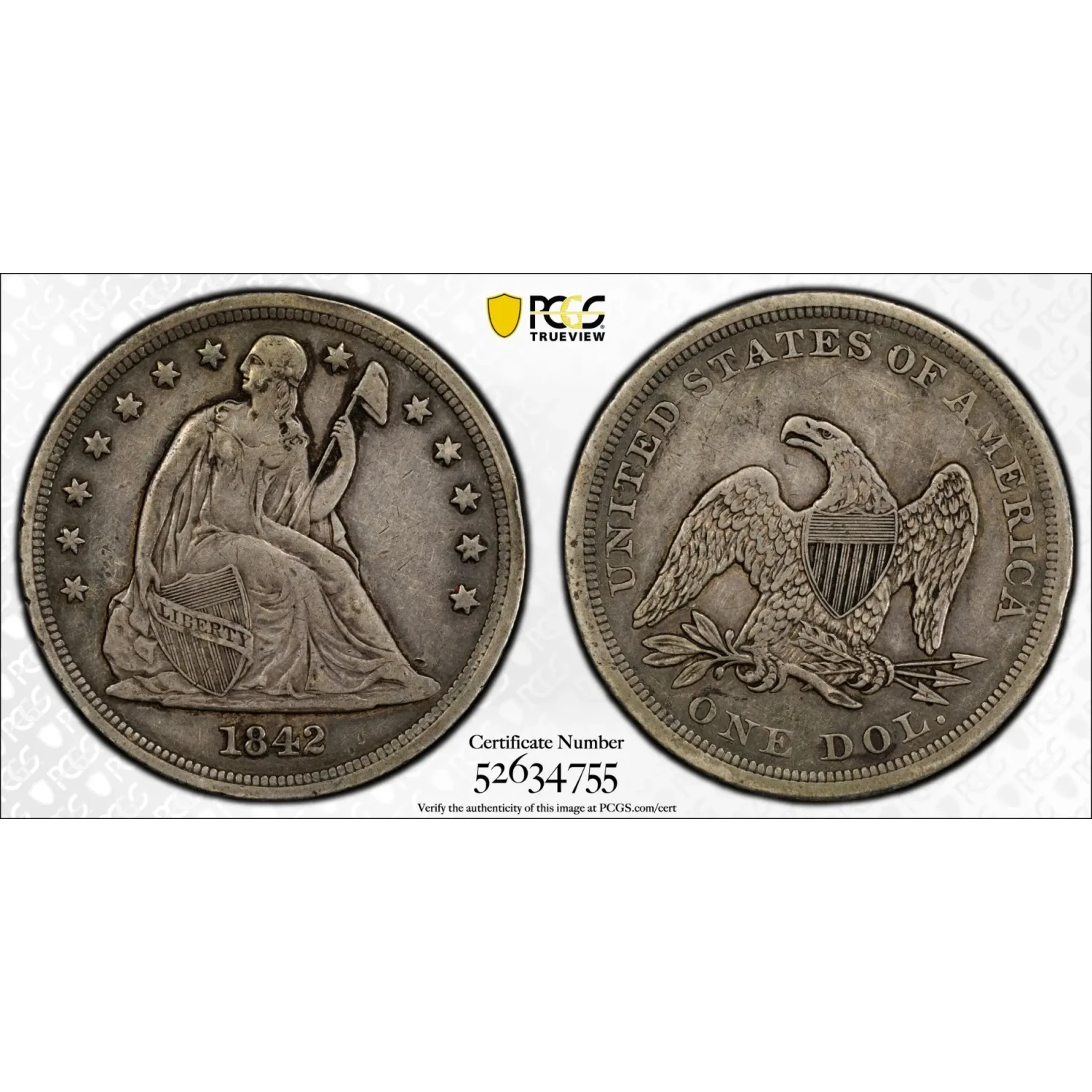 1842 Liberty Seated Silver Dollars PCGS VF-35