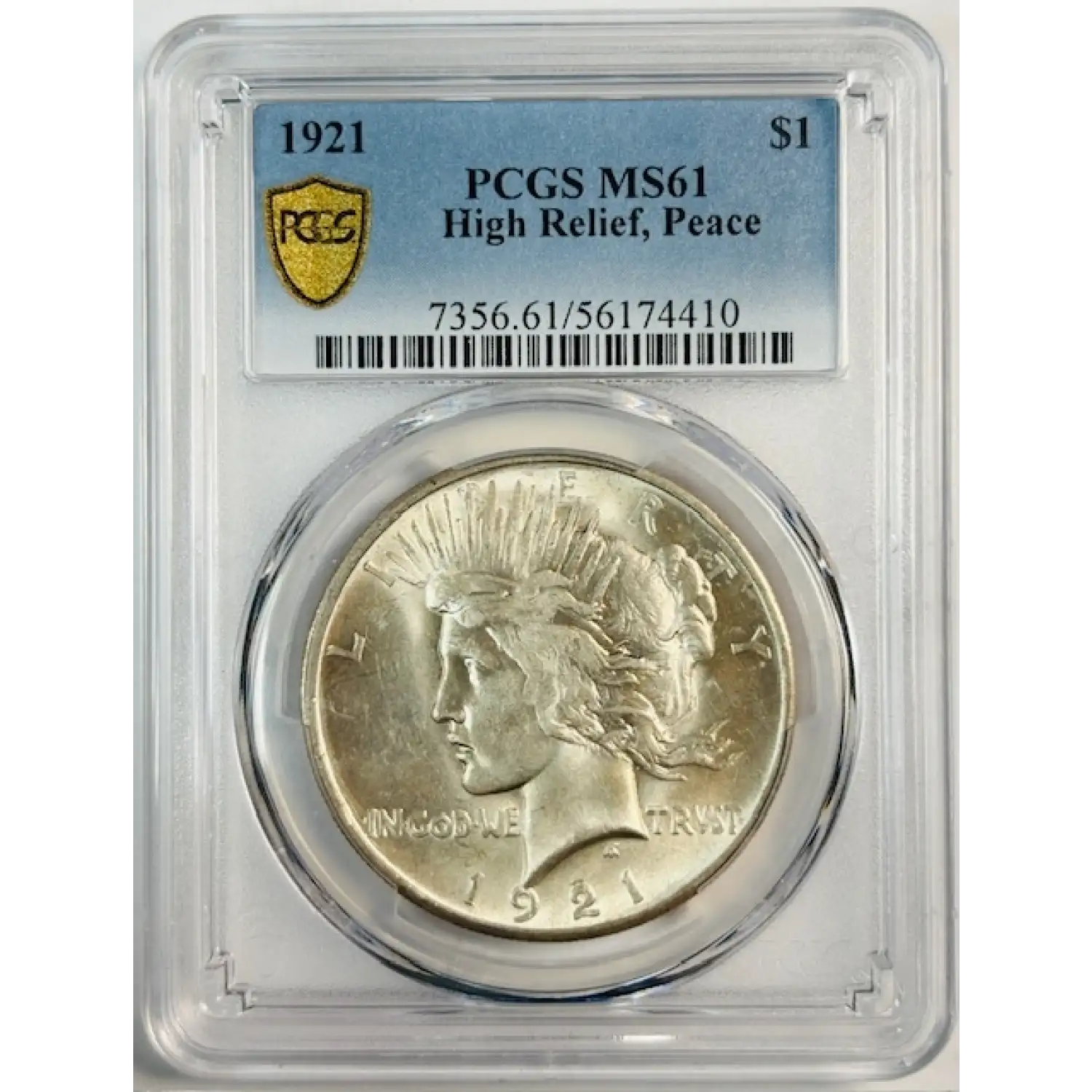 1921 Peace Dollar PCGS MS-61 High Relief White!