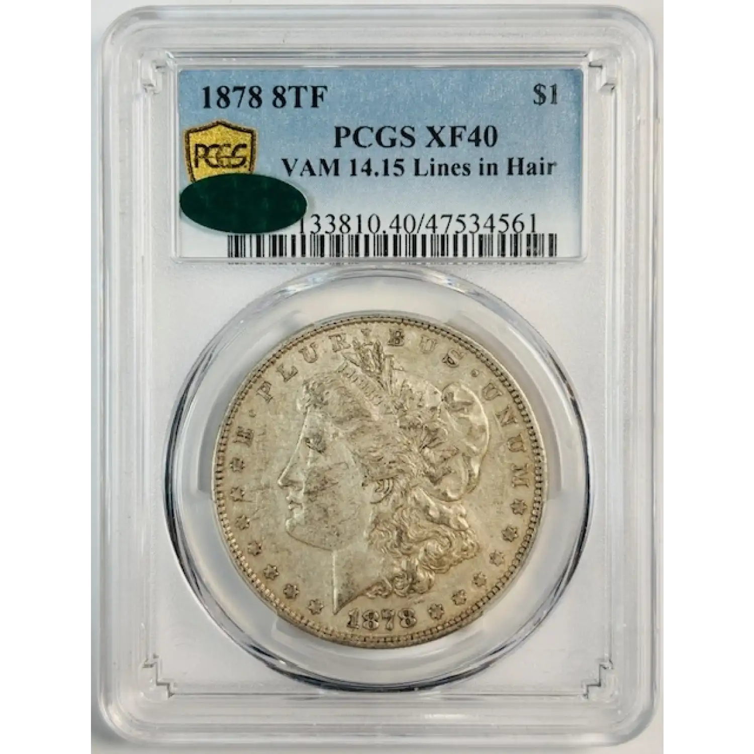 1878 Morgan Silver Dollar PCGS XF-40 8TF VAM 14-15 Lines In Hair CAC