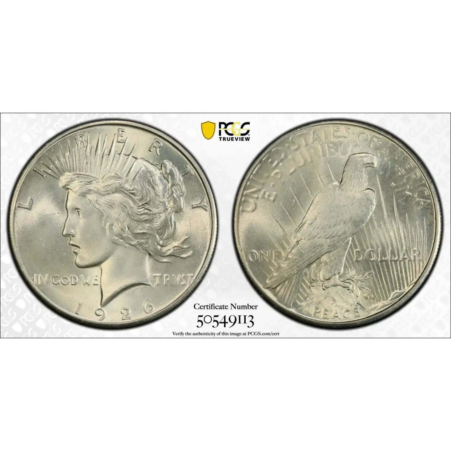 1926 Peace Dollar PCGS MS-66 Premium Quality! Sight White