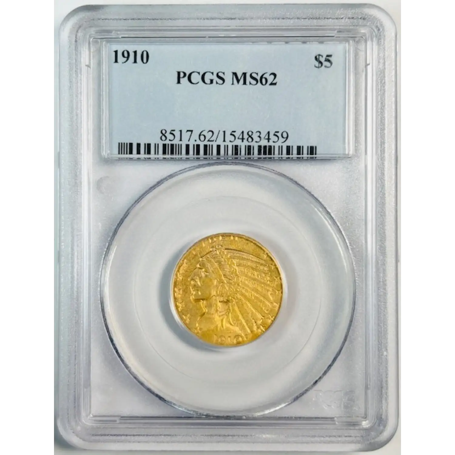1910 Gold Half Eagles $5 Indian Head PCGS MS-62