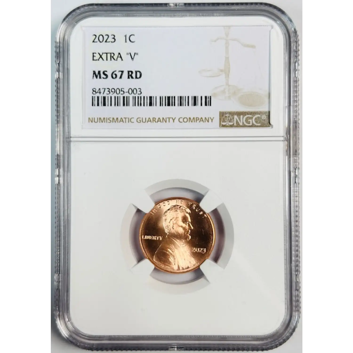 2023 Small Cents Lincoln, Shield Reverse NGC MS-67 RD EXTRA "V"