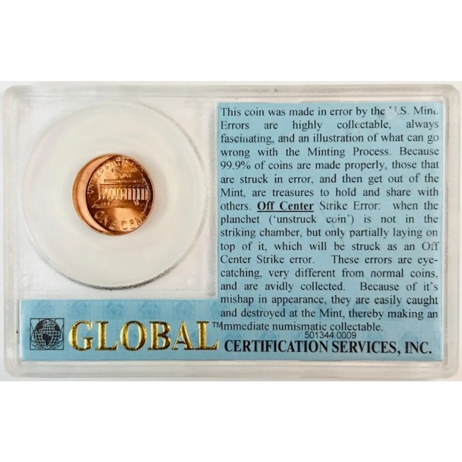 2001 Small Cents Lincoln, Memorial Reverse Other Off Center Global Holder Tells The Story
