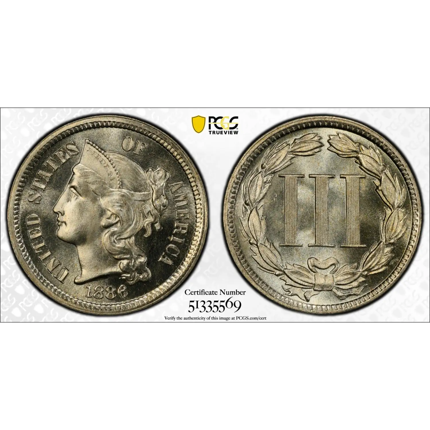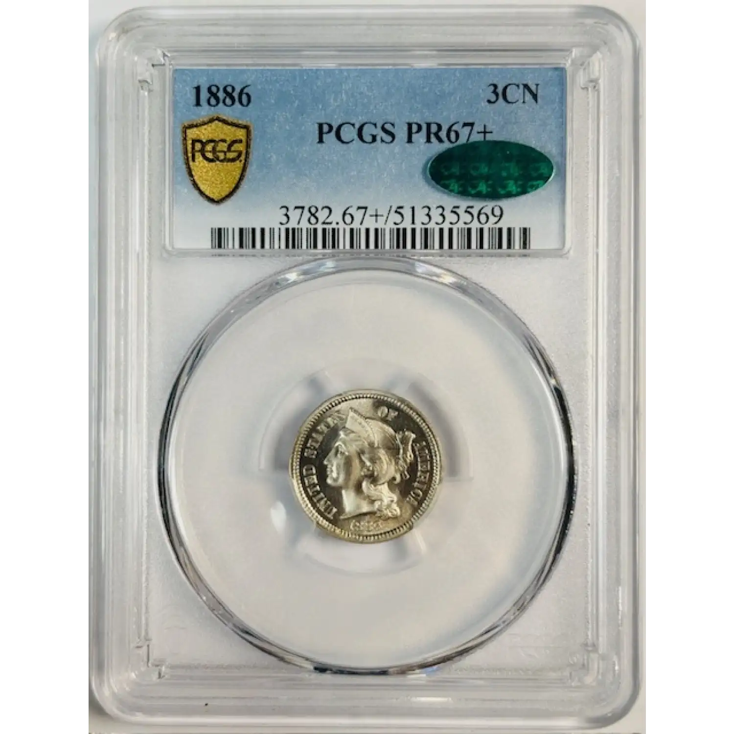 1886 Three Cent Pieces (Nickel) PCGS PR-67+ CAC