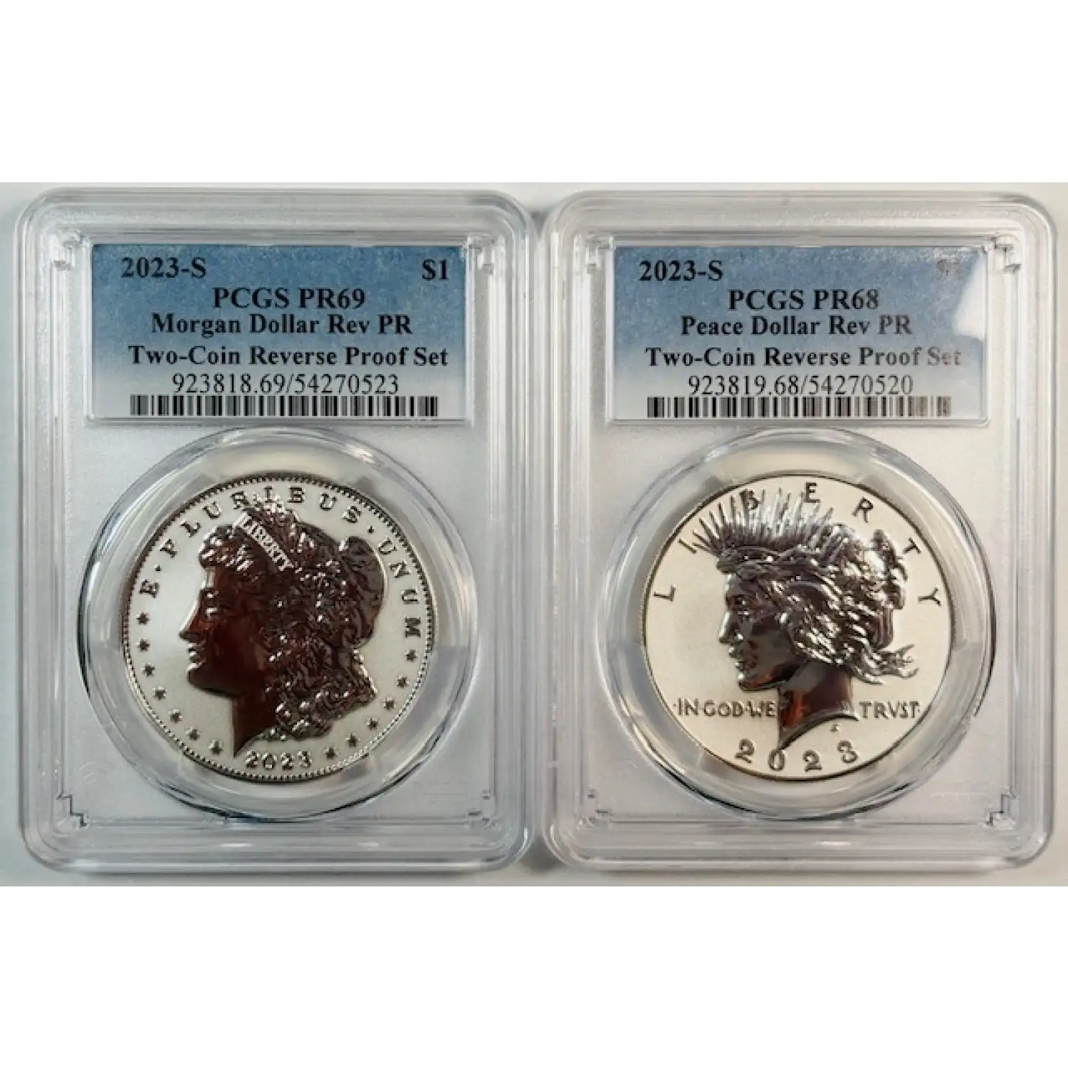 2023-S Modern Morgan Dollar Two Coin Set PCGS PR-69 Morgan and Peace Dollar Rev PR