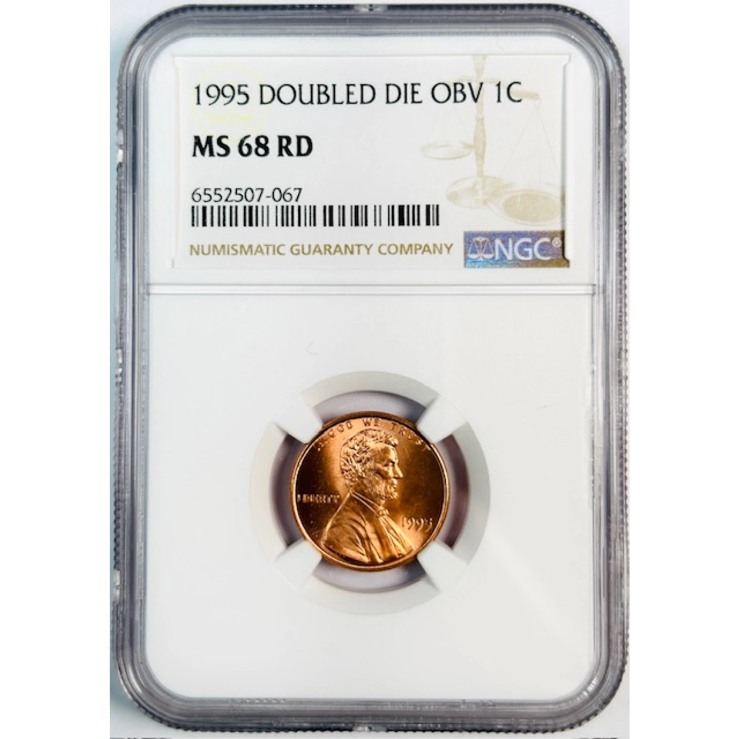 1995 Small Cents Lincoln, Memorial Reverse NGC MS-68 RD Double Die Obv