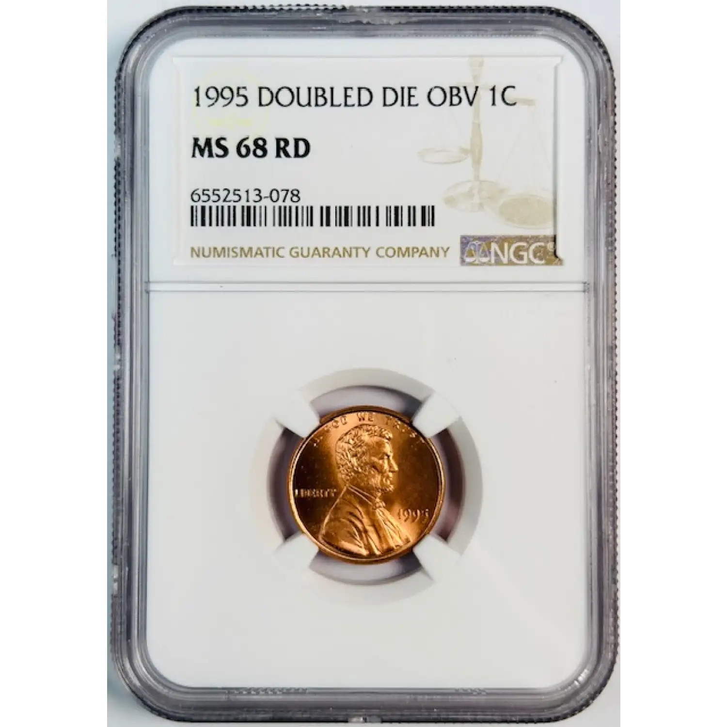 1995 Small Cents Lincoln, Memorial Reverse NGC MS-68 RD Double Die Obv